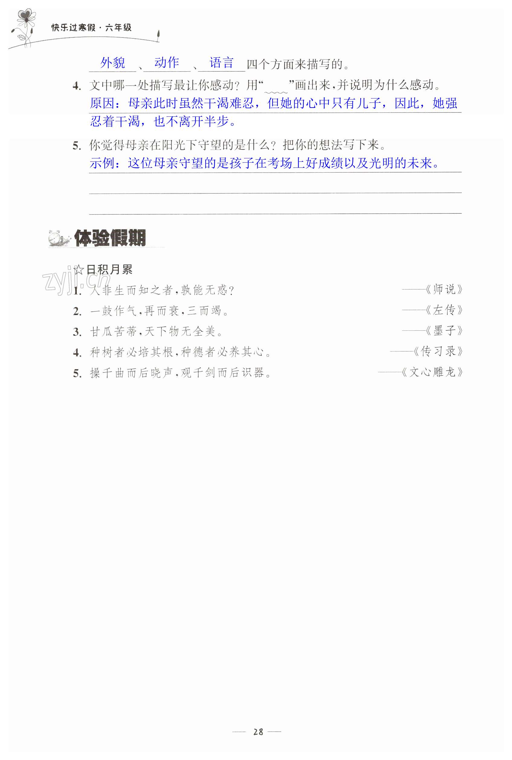 2023年快乐过寒假江苏凤凰美术出版社六年级