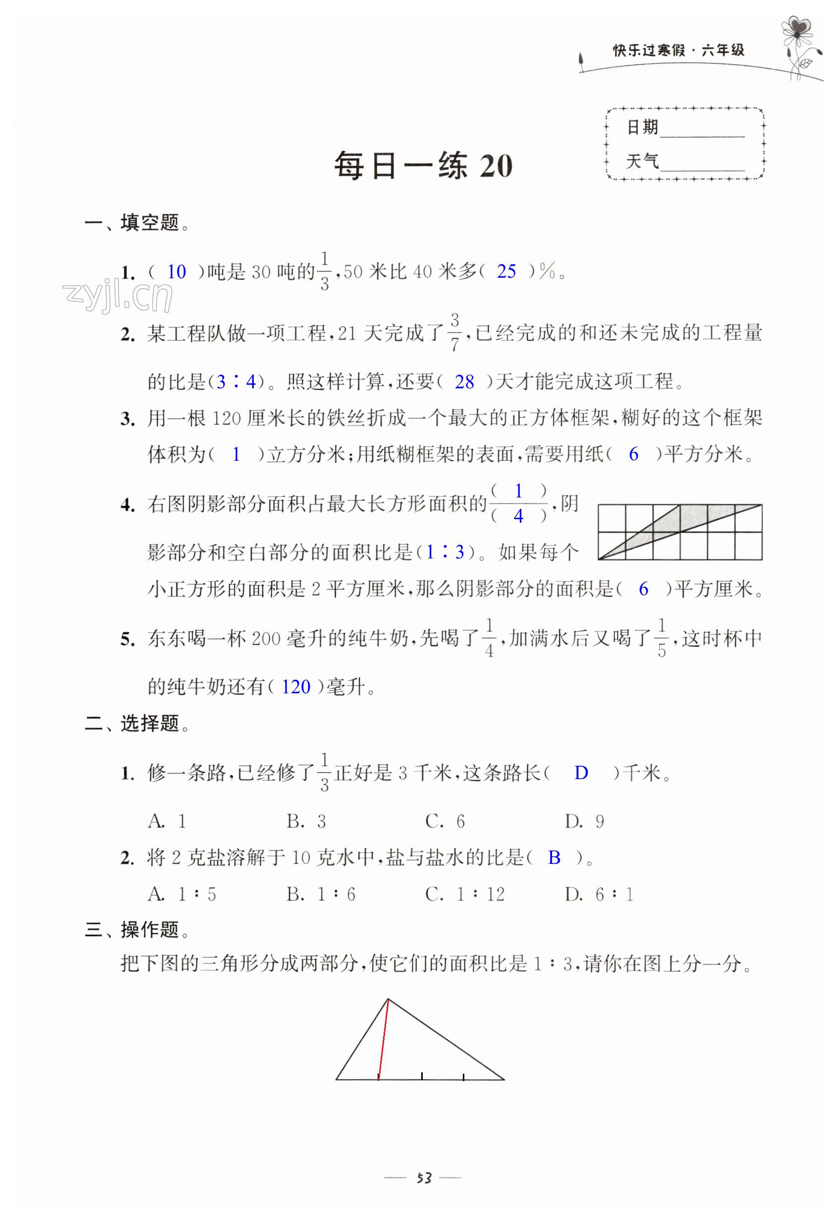 注:目前有些书本章节名称可能整理的还不是很完善,但都是按照顺序排列的,请同学们按照顺序仔细查找。练习册 2023年快乐过寒假江苏凤凰美术出版社六年级 答案主要是用来给同学们做完题方便对答案用的,请勿直接抄袭。