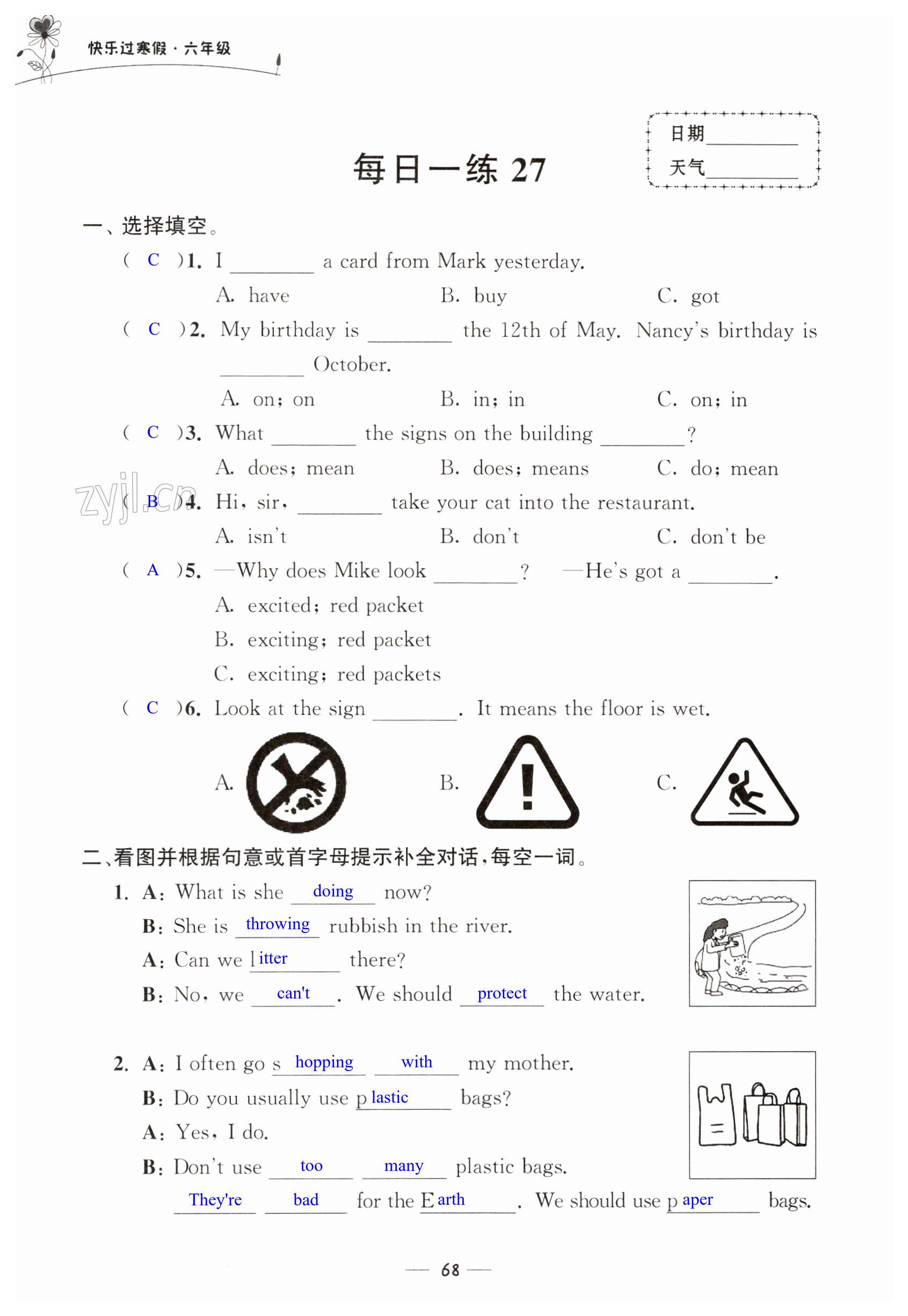 注:目前有些书本章节名称可能整理的还不是很完善,但都是按照顺序排列的,请同学们按照顺序仔细查找。练习册 2023年快乐过寒假江苏凤凰美术出版社六年级 答案主要是用来给同学们做完题方便对答案用的,请勿直接抄袭。