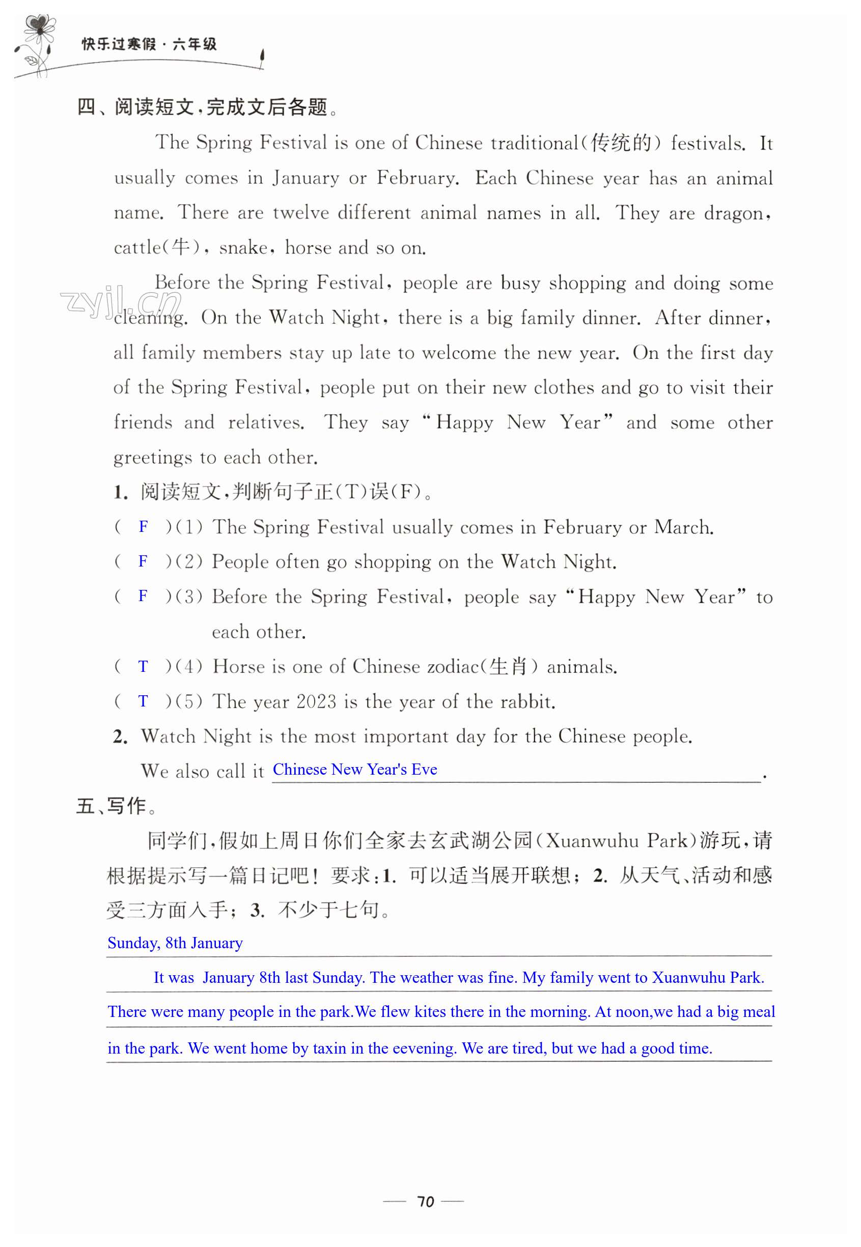 注:目前有些书本章节名称可能整理的还不是很完善,但都是按照顺序排列的,请同学们按照顺序仔细查找。练习册 2023年快乐过寒假江苏凤凰美术出版社六年级 答案主要是用来给同学们做完题方便对答案用的,请勿直接抄袭。