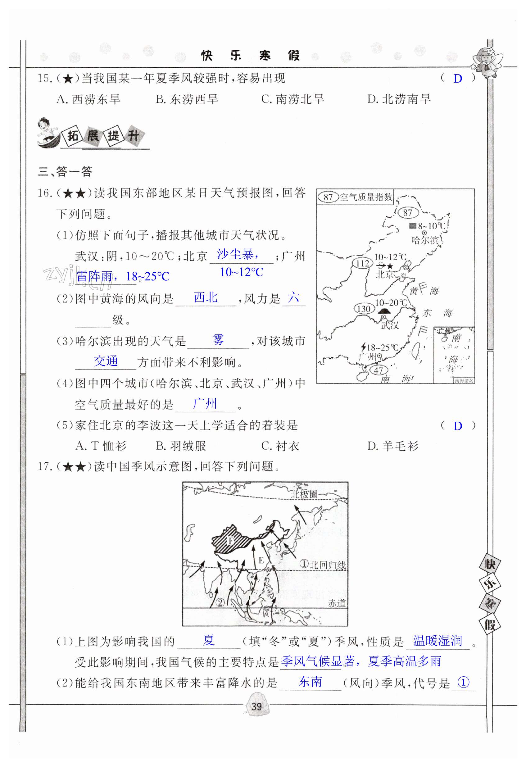 注:目前有些书本章节名称可能整理的还不是很完善,但都是按照顺序排列的,请同学们按照顺序仔细查找。练习册 2023年Happy寒假作业快乐寒假七年级地理 答案主要是用来给同学们做完题方便对答案用的,请勿直接抄袭。