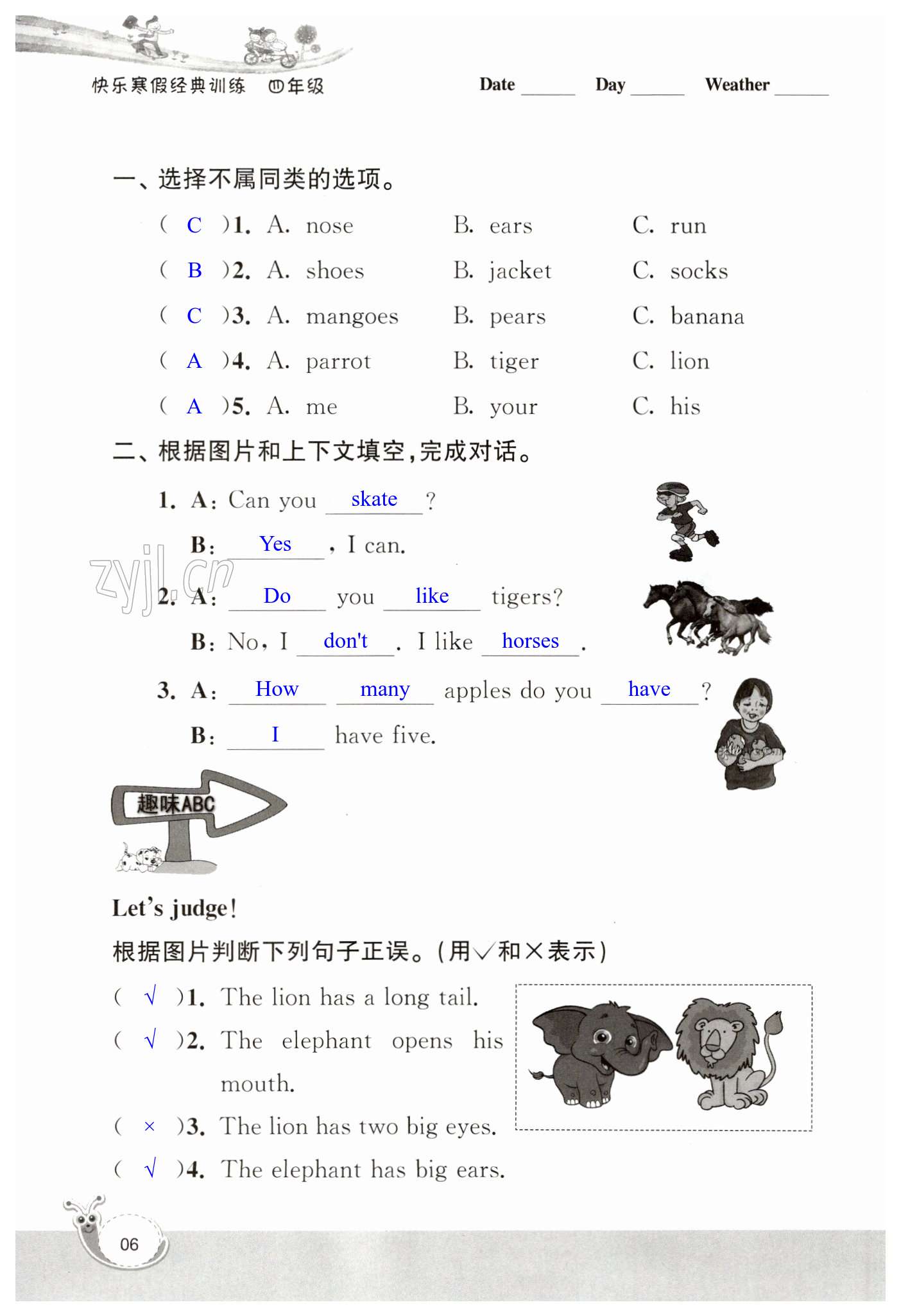 注:目前有些书本章节名称可能整理的还不是很完善,但都是按照顺序排列的,请同学们按照顺序仔细查找。练习册 2023年快乐寒假经典训练江苏凤凰科学技术出版社四年级英语人教版 答案主要是用来给同学们做完题方便对答案用的,请勿直接抄袭。