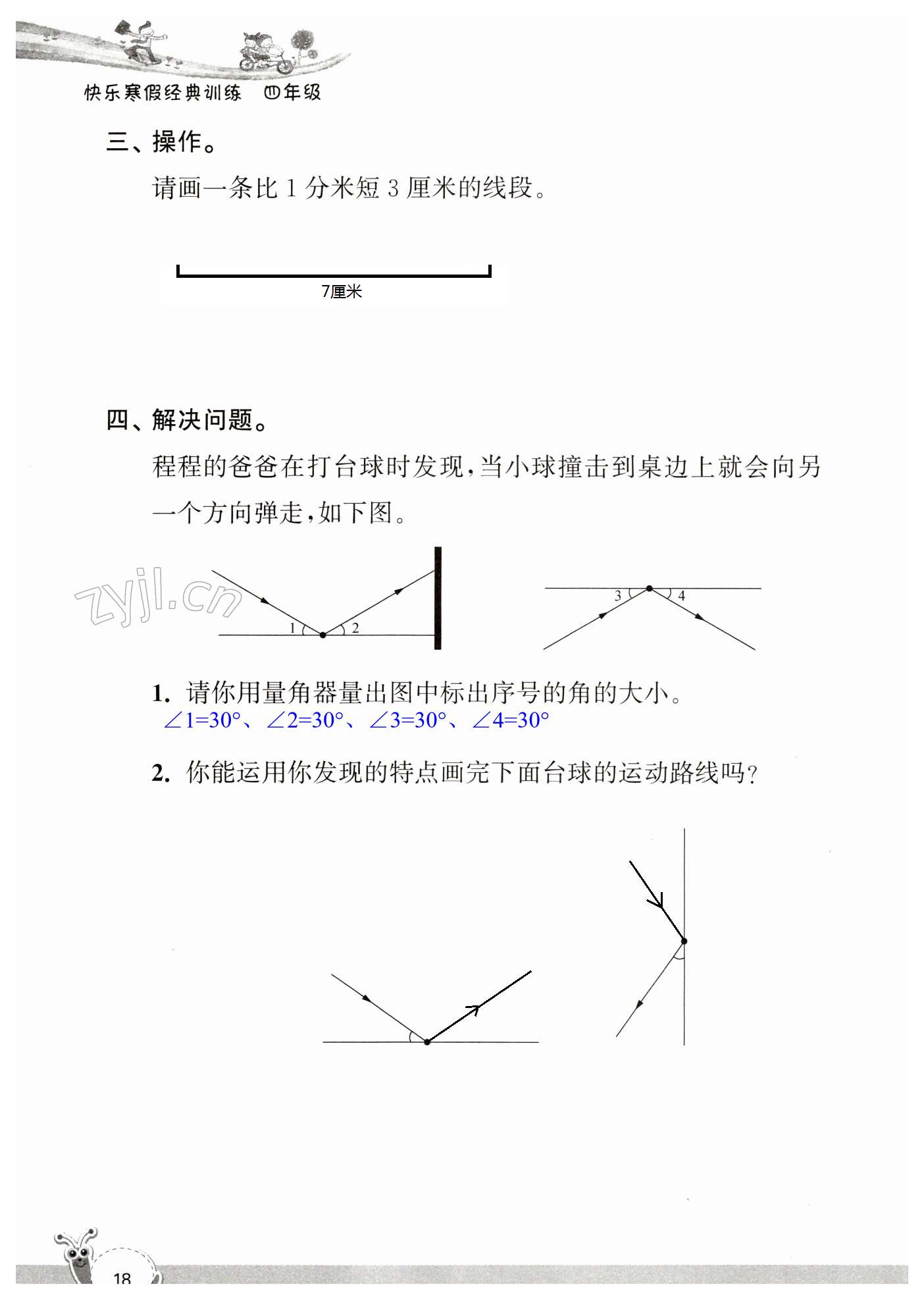 注:目前有些书本章节名称可能整理的还不是很完善,但都是按照顺序排列的,请同学们按照顺序仔细查找。练习册 2023年快乐寒假经典训练江苏凤凰科学技术出版社四年级数学人教版 答案主要是用来给同学们做完题方便对答案用的,请勿直接抄袭。