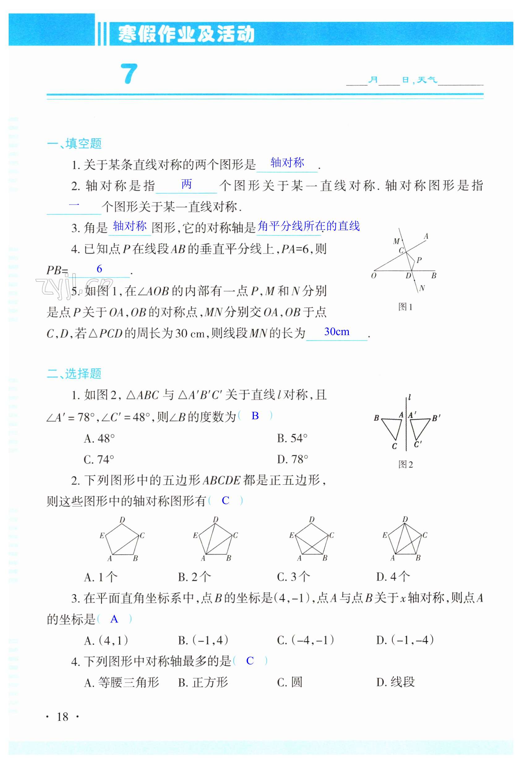 注:目前有些书本章节名称可能整理的还不是很完善,但都是按照顺序排列的,请同学们按照顺序仔细查找。练习册 2023年寒假作业及活动八年级数学人教版 答案主要是用来给同学们做完题方便对答案用的,请勿直接抄袭。