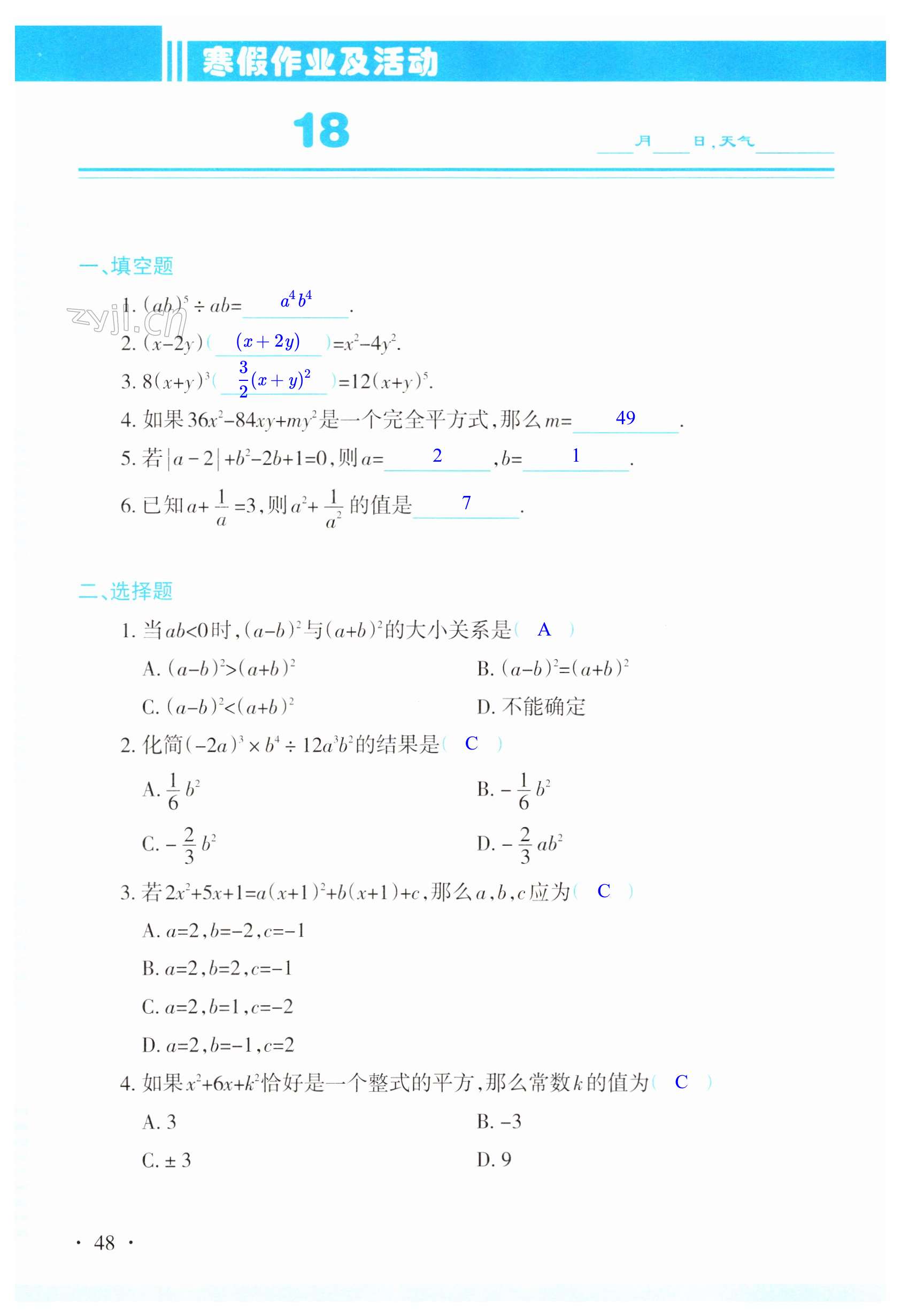 注:目前有些书本章节名称可能整理的还不是很完善,但都是按照顺序排列的,请同学们按照顺序仔细查找。练习册 2023年寒假作业及活动八年级数学人教版 答案主要是用来给同学们做完题方便对答案用的,请勿直接抄袭。