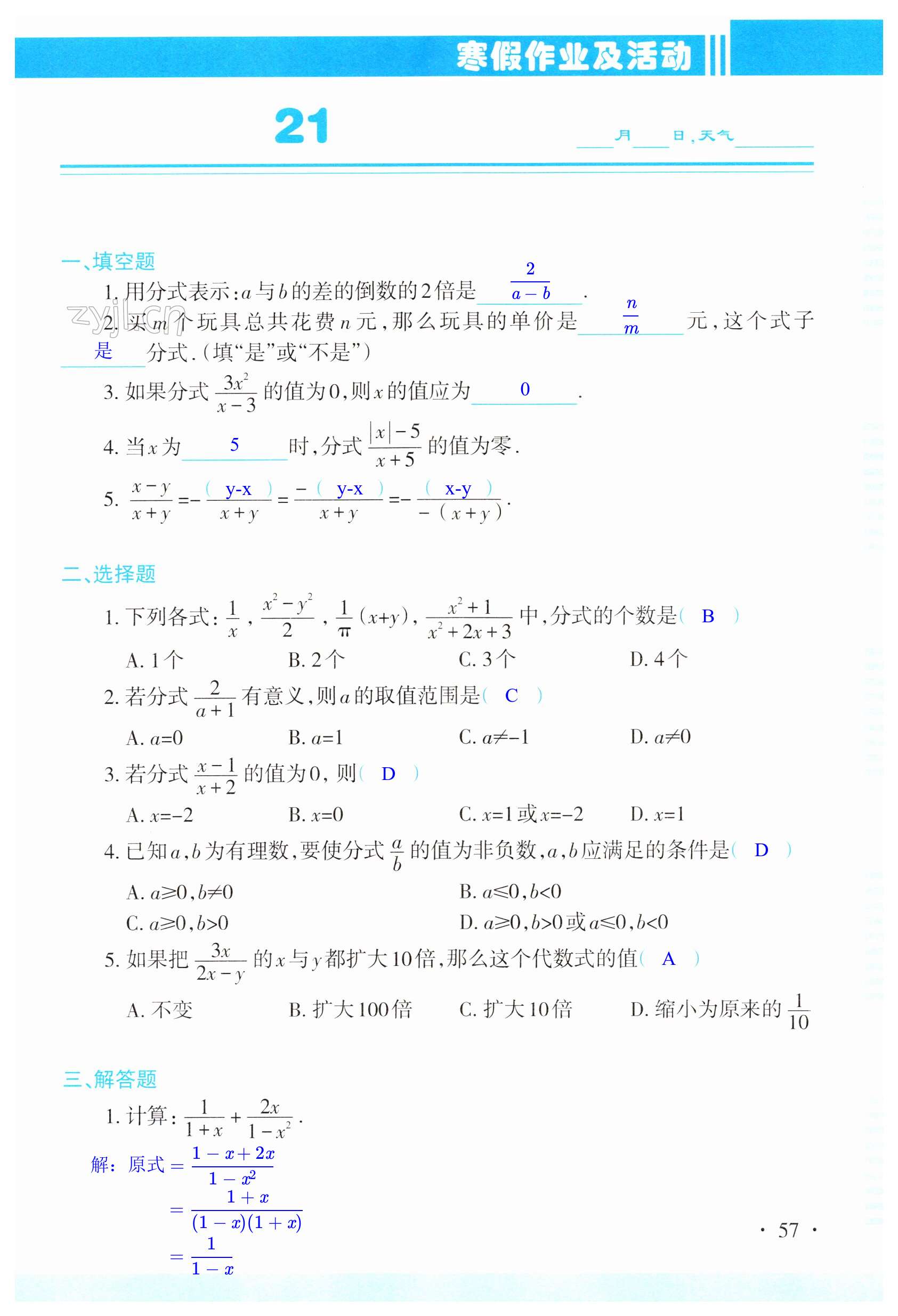 注:目前有些书本章节名称可能整理的还不是很完善,但都是按照顺序排列的,请同学们按照顺序仔细查找。练习册 2023年寒假作业及活动八年级数学人教版 答案主要是用来给同学们做完题方便对答案用的,请勿直接抄袭。