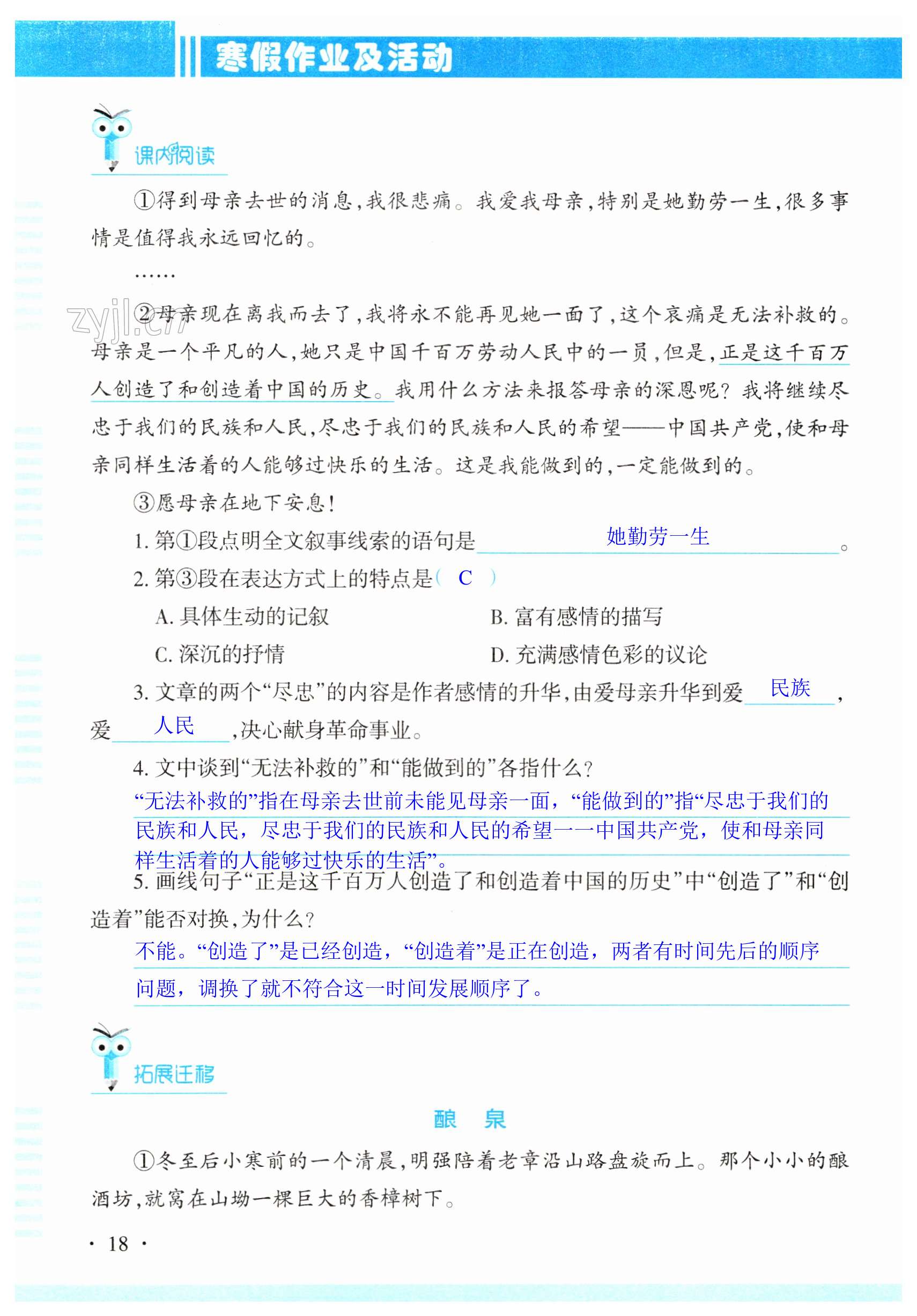 注:目前有些书本章节名称可能整理的还不是很完善,但都是按照顺序排列的,请同学们按照顺序仔细查找。练习册 2023年寒假作业及活动八年级语文人教版 答案主要是用来给同学们做完题方便对答案用的,请勿直接抄袭。