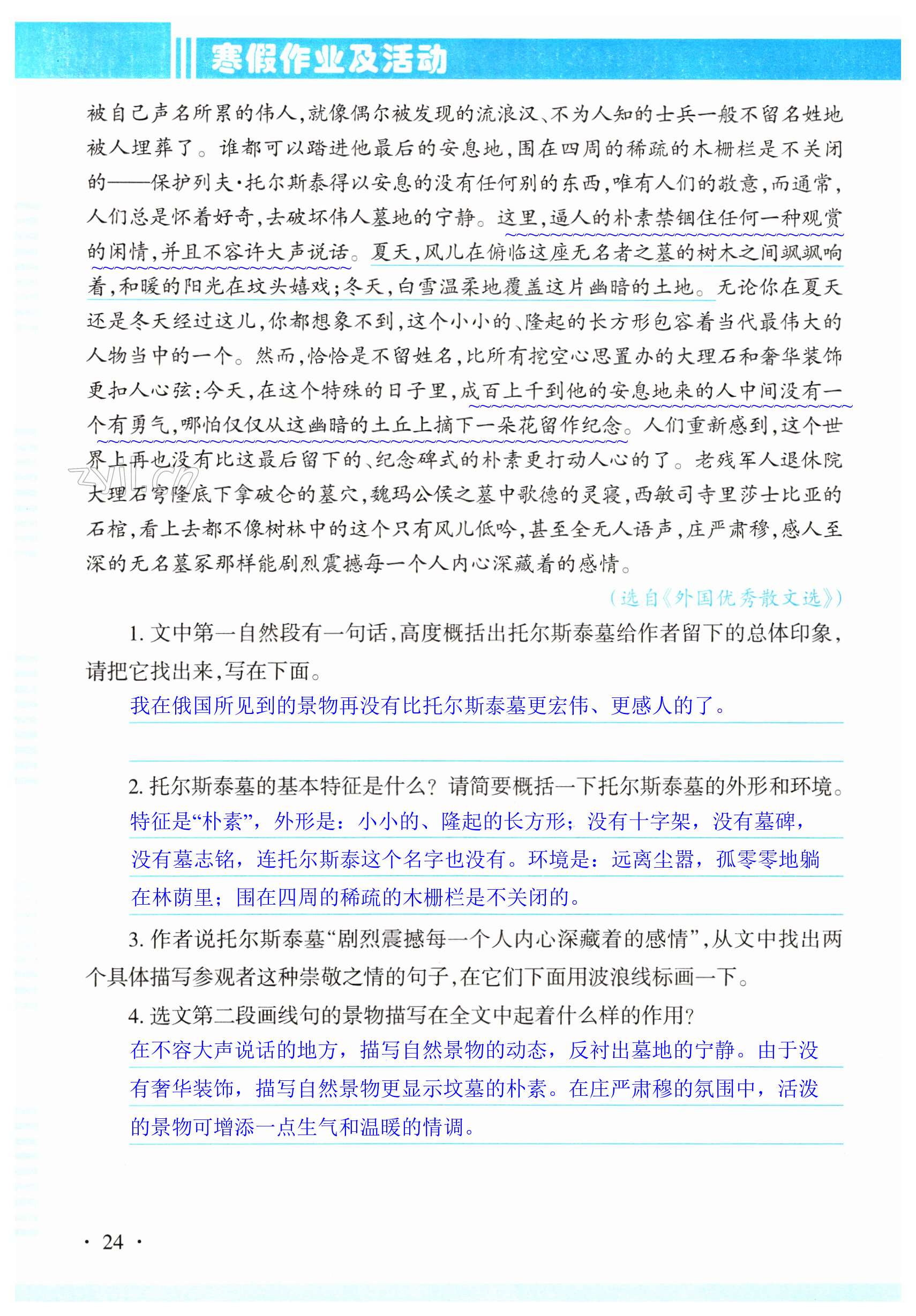 注:目前有些书本章节名称可能整理的还不是很完善,但都是按照顺序排列的,请同学们按照顺序仔细查找。练习册 2023年寒假作业及活动八年级语文人教版 答案主要是用来给同学们做完题方便对答案用的,请勿直接抄袭。