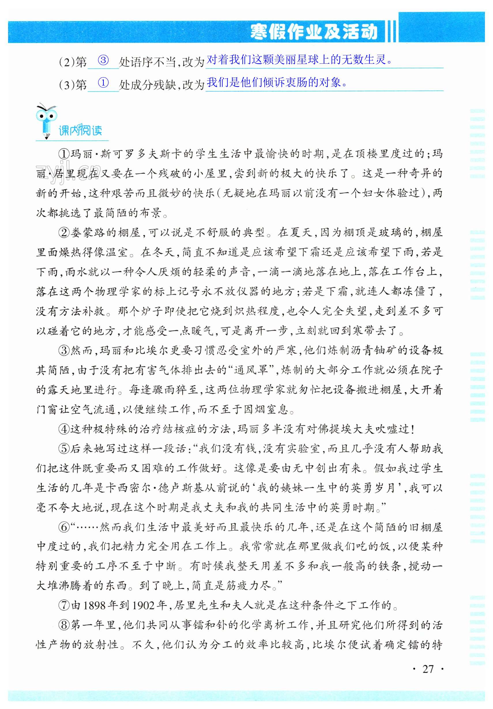 注:目前有些书本章节名称可能整理的还不是很完善,但都是按照顺序排列的,请同学们按照顺序仔细查找。练习册 2023年寒假作业及活动八年级语文人教版 答案主要是用来给同学们做完题方便对答案用的,请勿直接抄袭。