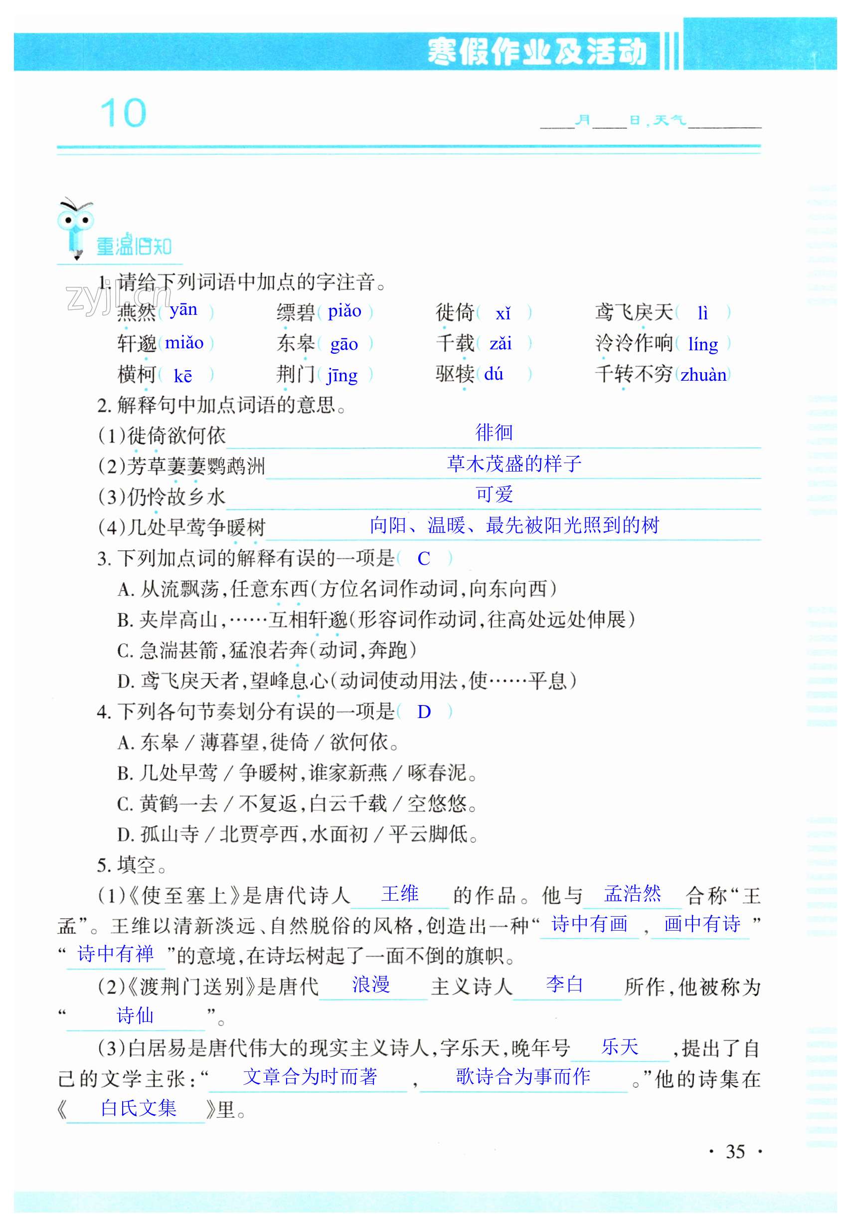 注:目前有些书本章节名称可能整理的还不是很完善,但都是按照顺序排列的,请同学们按照顺序仔细查找。练习册 2023年寒假作业及活动八年级语文人教版 答案主要是用来给同学们做完题方便对答案用的,请勿直接抄袭。
