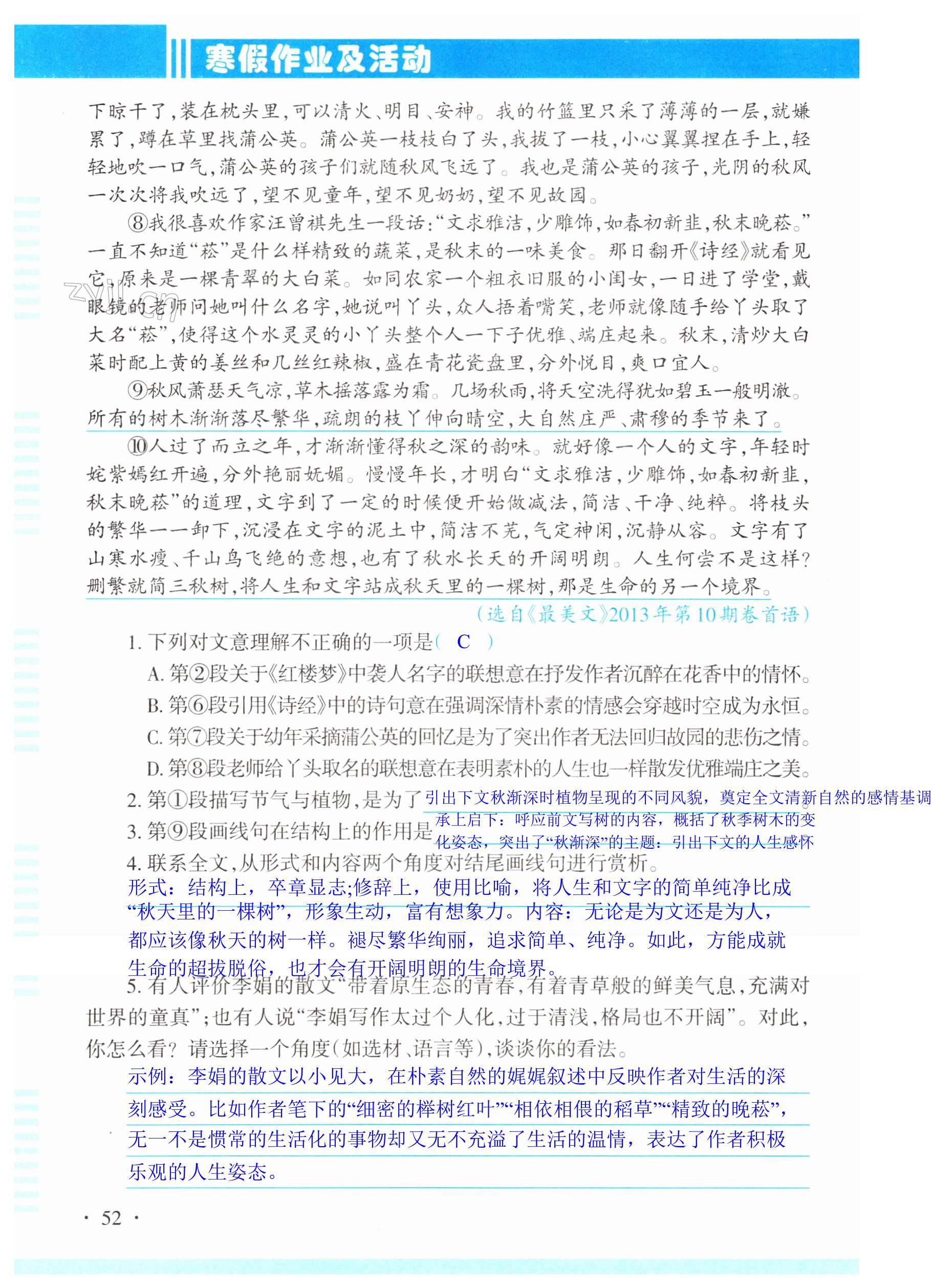 注:目前有些书本章节名称可能整理的还不是很完善,但都是按照顺序排列的,请同学们按照顺序仔细查找。练习册 2023年寒假作业及活动八年级语文人教版 答案主要是用来给同学们做完题方便对答案用的,请勿直接抄袭。