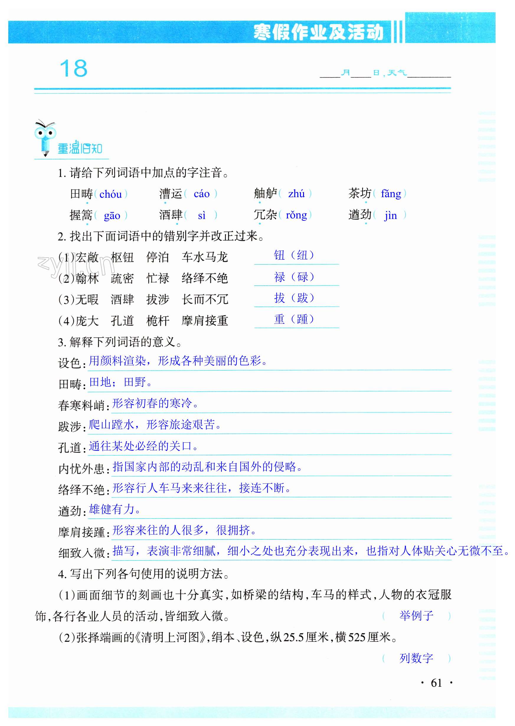注:目前有些书本章节名称可能整理的还不是很完善,但都是按照顺序排列的,请同学们按照顺序仔细查找。练习册 2023年寒假作业及活动八年级语文人教版 答案主要是用来给同学们做完题方便对答案用的,请勿直接抄袭。