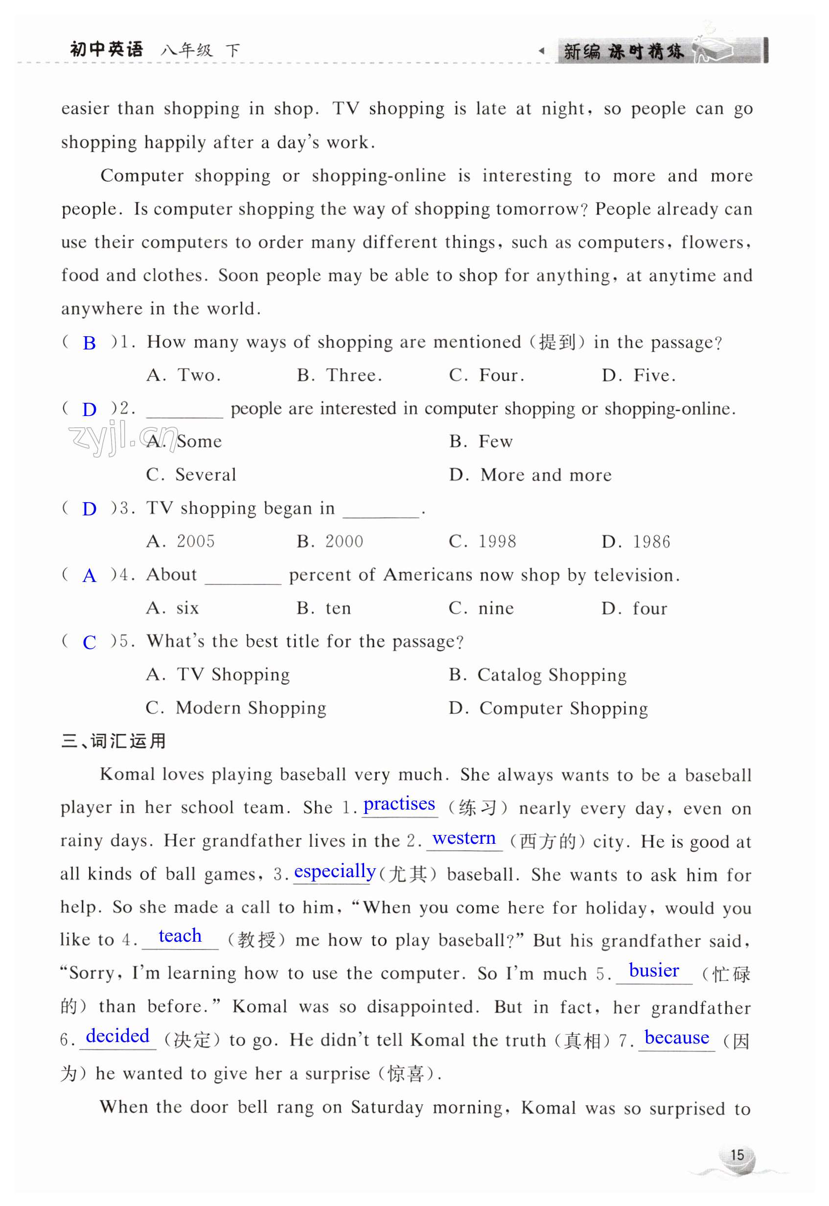 注:目前有些书本章节名称可能整理的还不是很完善,但都是按照顺序排列的,请同学们按照顺序仔细查找。练习册 2023年新编课时精练八年级英语下册外研版 答案主要是用来给同学们做完题方便对答案用的,请勿直接抄袭。