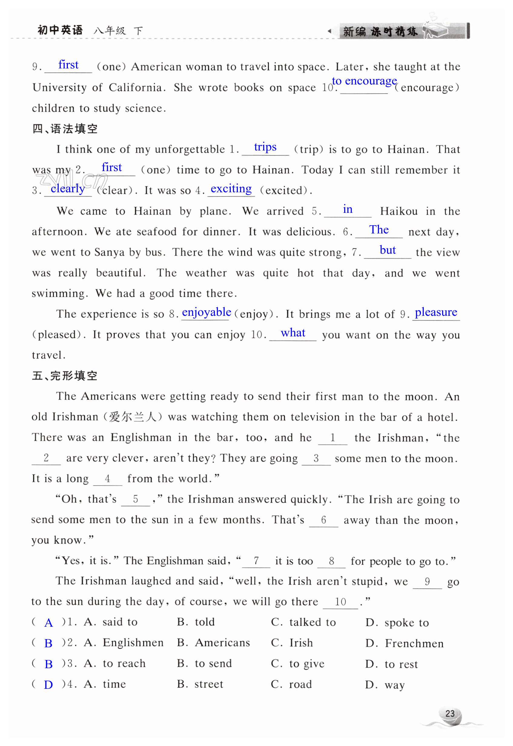 注:目前有些书本章节名称可能整理的还不是很完善,但都是按照顺序排列的,请同学们按照顺序仔细查找。练习册 2023年新编课时精练八年级英语下册外研版 答案主要是用来给同学们做完题方便对答案用的,请勿直接抄袭。