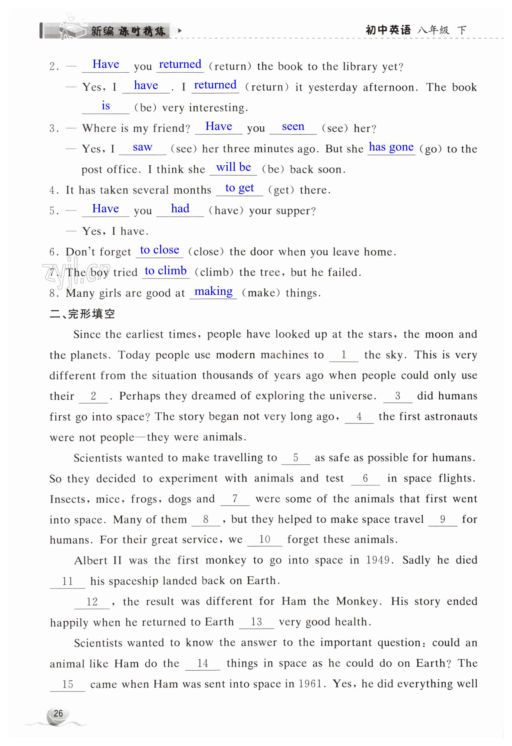注:目前有些书本章节名称可能整理的还不是很完善,但都是按照顺序排列的,请同学们按照顺序仔细查找。练习册 2023年新编课时精练八年级英语下册外研版 答案主要是用来给同学们做完题方便对答案用的,请勿直接抄袭。
