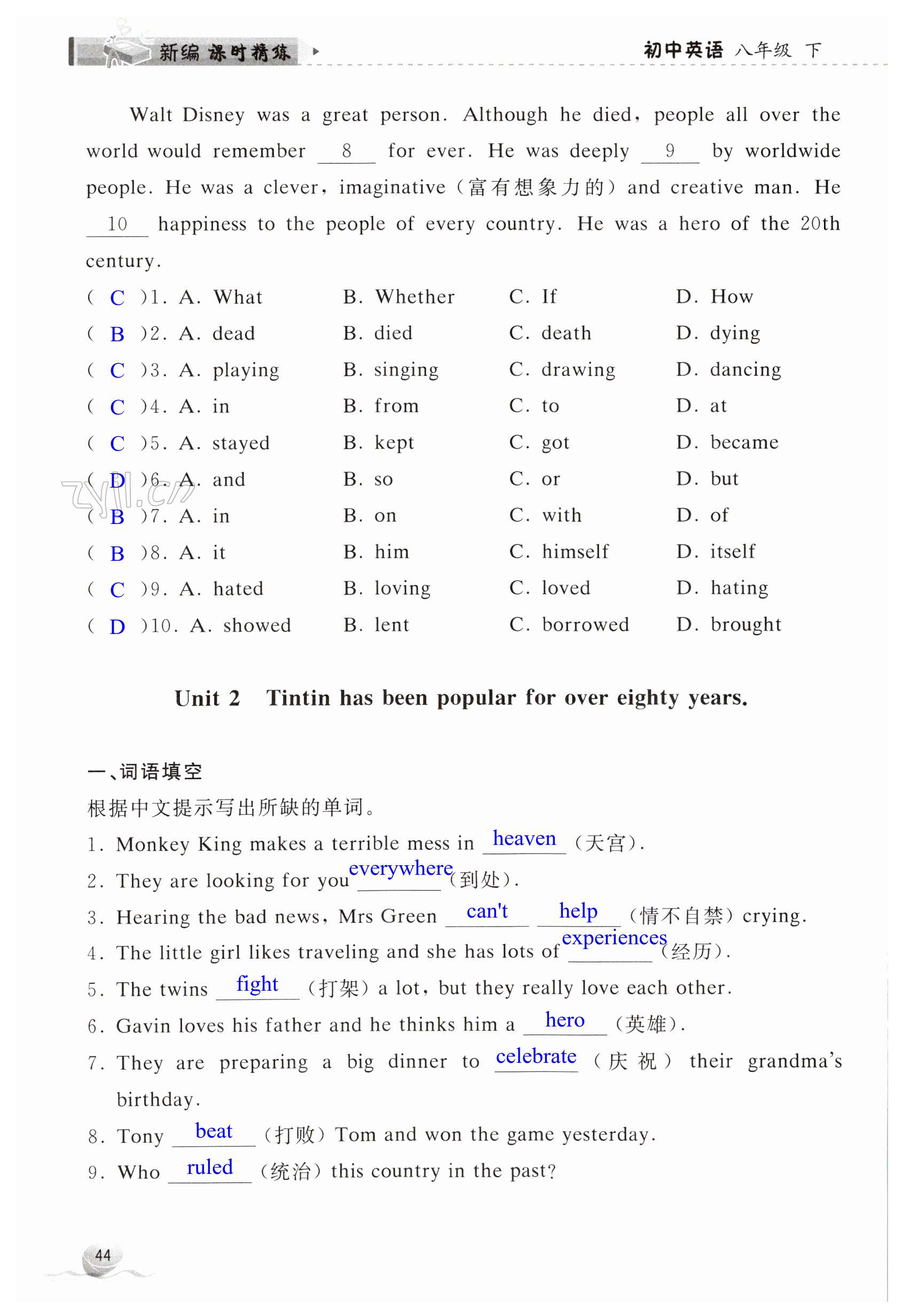 注:目前有些书本章节名称可能整理的还不是很完善,但都是按照顺序排列的,请同学们按照顺序仔细查找。练习册 2023年新编课时精练八年级英语下册外研版 答案主要是用来给同学们做完题方便对答案用的,请勿直接抄袭。