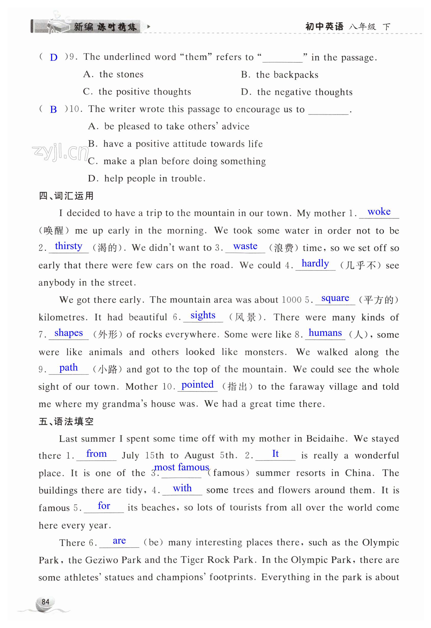 注:目前有些书本章节名称可能整理的还不是很完善,但都是按照顺序排列的,请同学们按照顺序仔细查找。练习册 2023年新编课时精练八年级英语下册外研版 答案主要是用来给同学们做完题方便对答案用的,请勿直接抄袭。