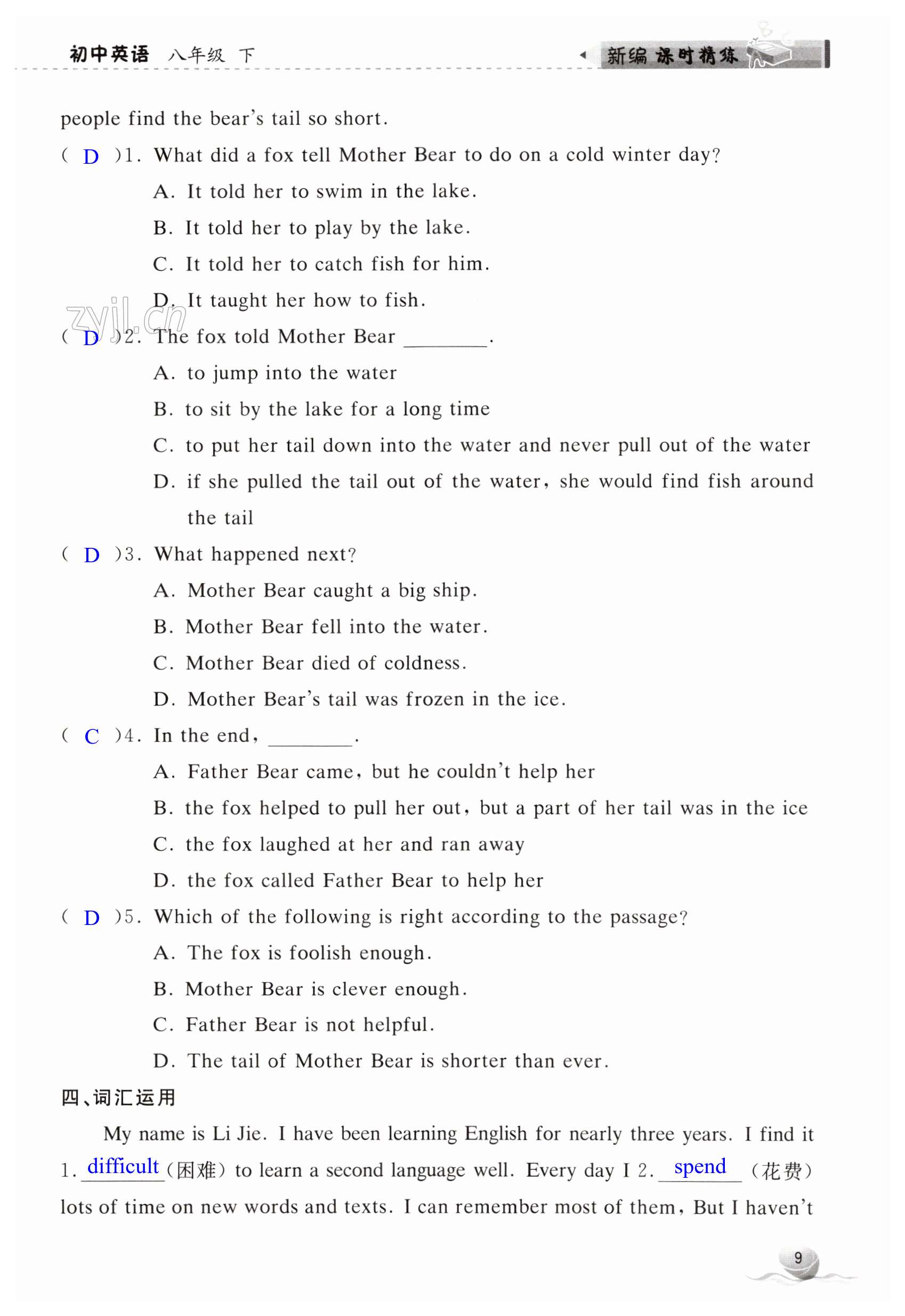 注:目前有些书本章节名称可能整理的还不是很完善,但都是按照顺序排列的,请同学们按照顺序仔细查找。练习册 2023年新编课时精练八年级英语下册外研版 答案主要是用来给同学们做完题方便对答案用的,请勿直接抄袭。
