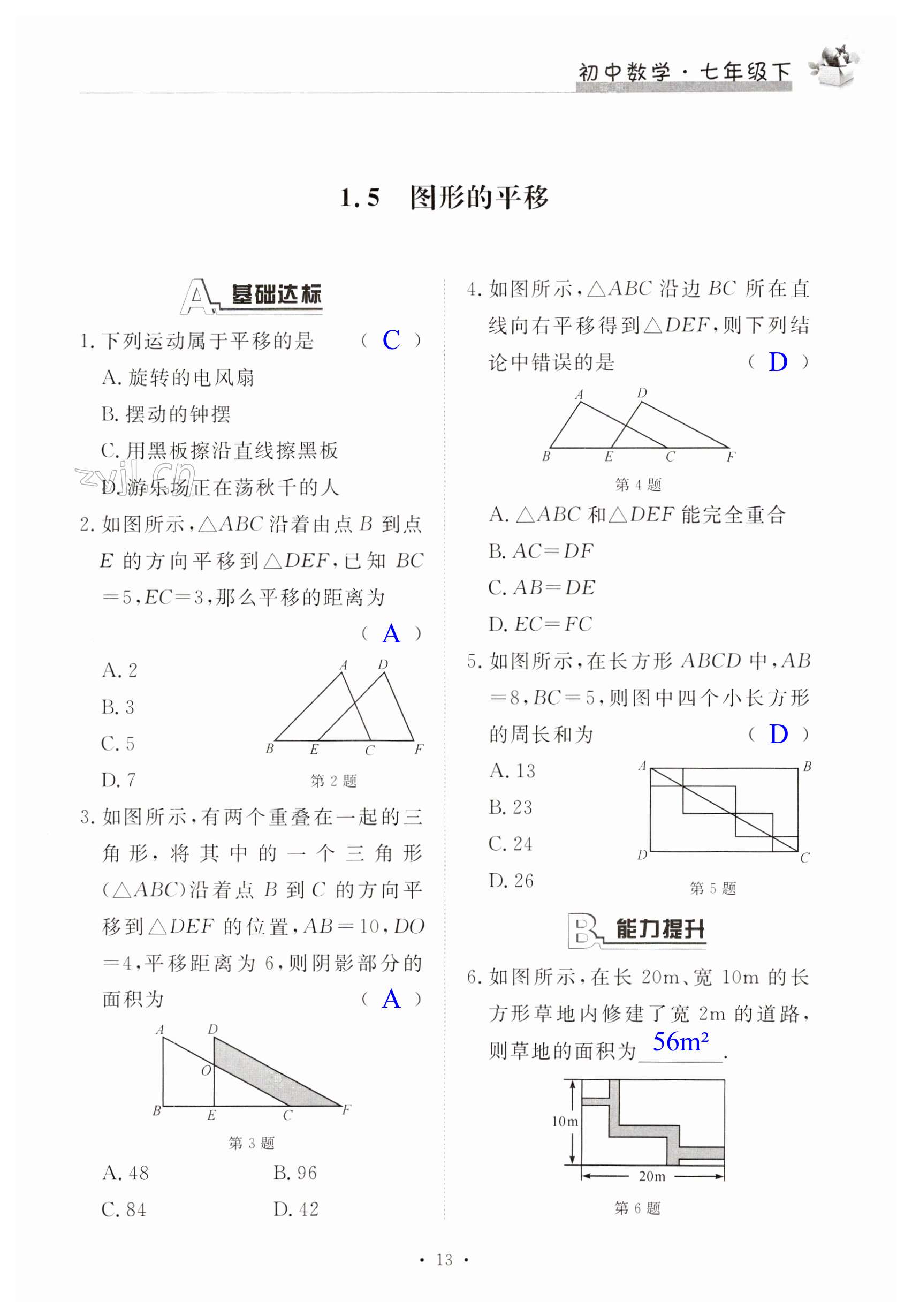 注:目前有些书本章节名称可能整理的还不是很完善,但都是按照顺序排列的,请同学们按照顺序仔细查找。练习册 2023年新编课时精练七年级数学下册浙教版 答案主要是用来给同学们做完题方便对答案用的,请勿直接抄袭。