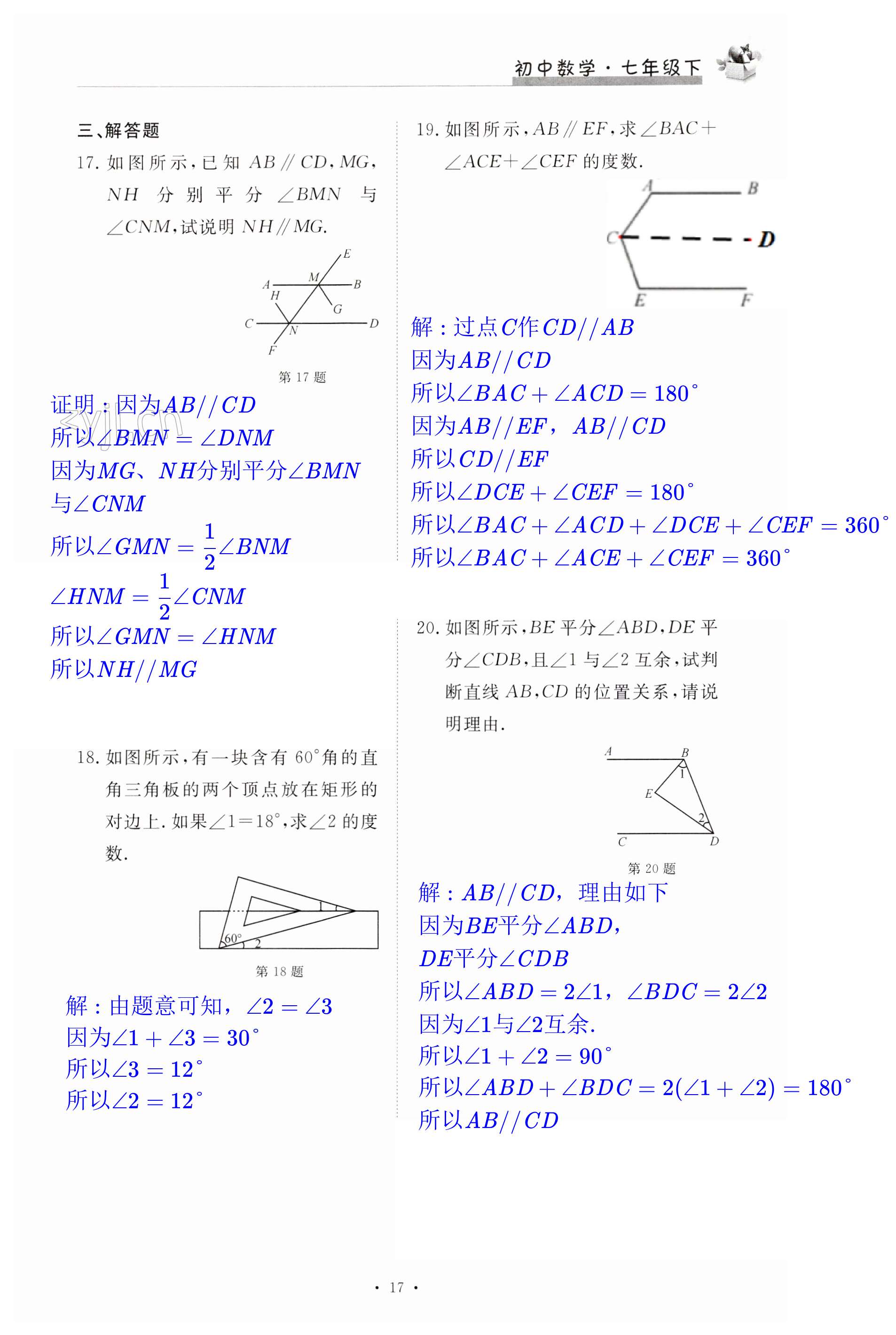注:目前有些书本章节名称可能整理的还不是很完善,但都是按照顺序排列的,请同学们按照顺序仔细查找。练习册 2023年新编课时精练七年级数学下册浙教版 答案主要是用来给同学们做完题方便对答案用的,请勿直接抄袭。