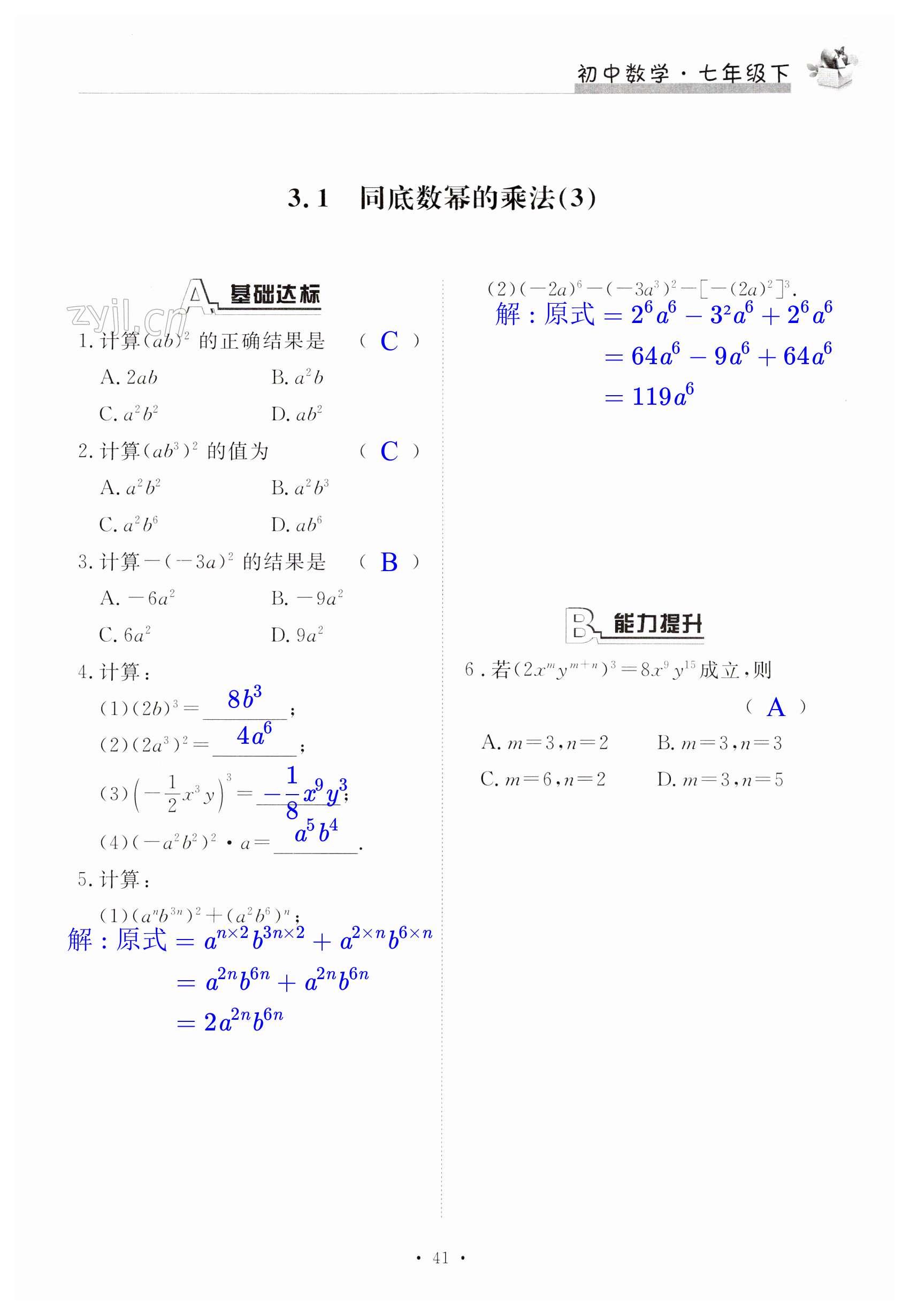 注:目前有些书本章节名称可能整理的还不是很完善,但都是按照顺序排列的,请同学们按照顺序仔细查找。练习册 2023年新编课时精练七年级数学下册浙教版 答案主要是用来给同学们做完题方便对答案用的,请勿直接抄袭。