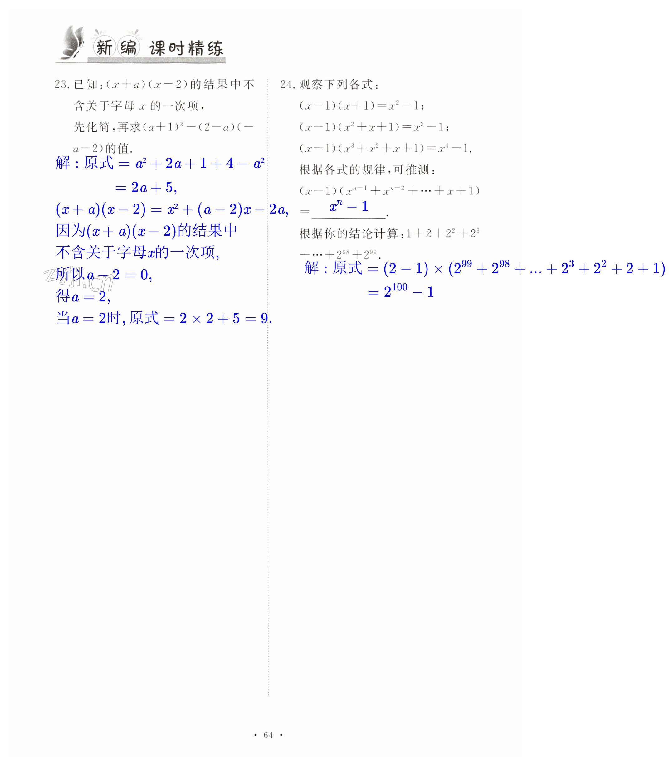 注:目前有些书本章节名称可能整理的还不是很完善,但都是按照顺序排列的,请同学们按照顺序仔细查找。练习册 2023年新编课时精练七年级数学下册浙教版 答案主要是用来给同学们做完题方便对答案用的,请勿直接抄袭。