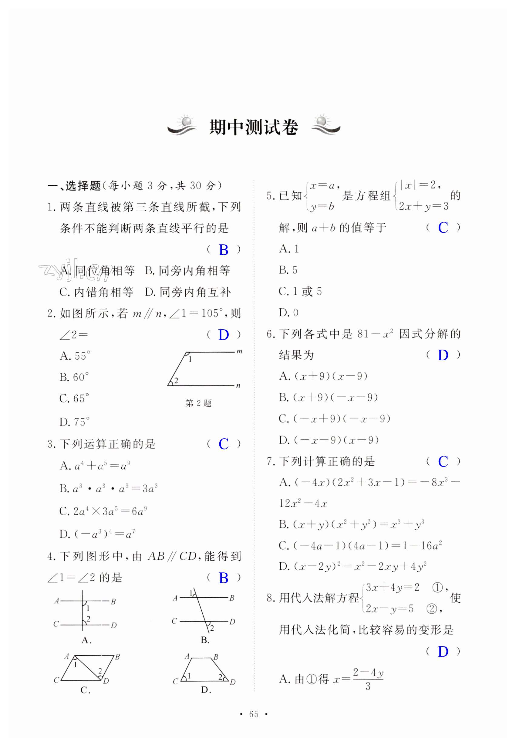 注:目前有些书本章节名称可能整理的还不是很完善,但都是按照顺序排列的,请同学们按照顺序仔细查找。练习册 2023年新编课时精练七年级数学下册浙教版 答案主要是用来给同学们做完题方便对答案用的,请勿直接抄袭。