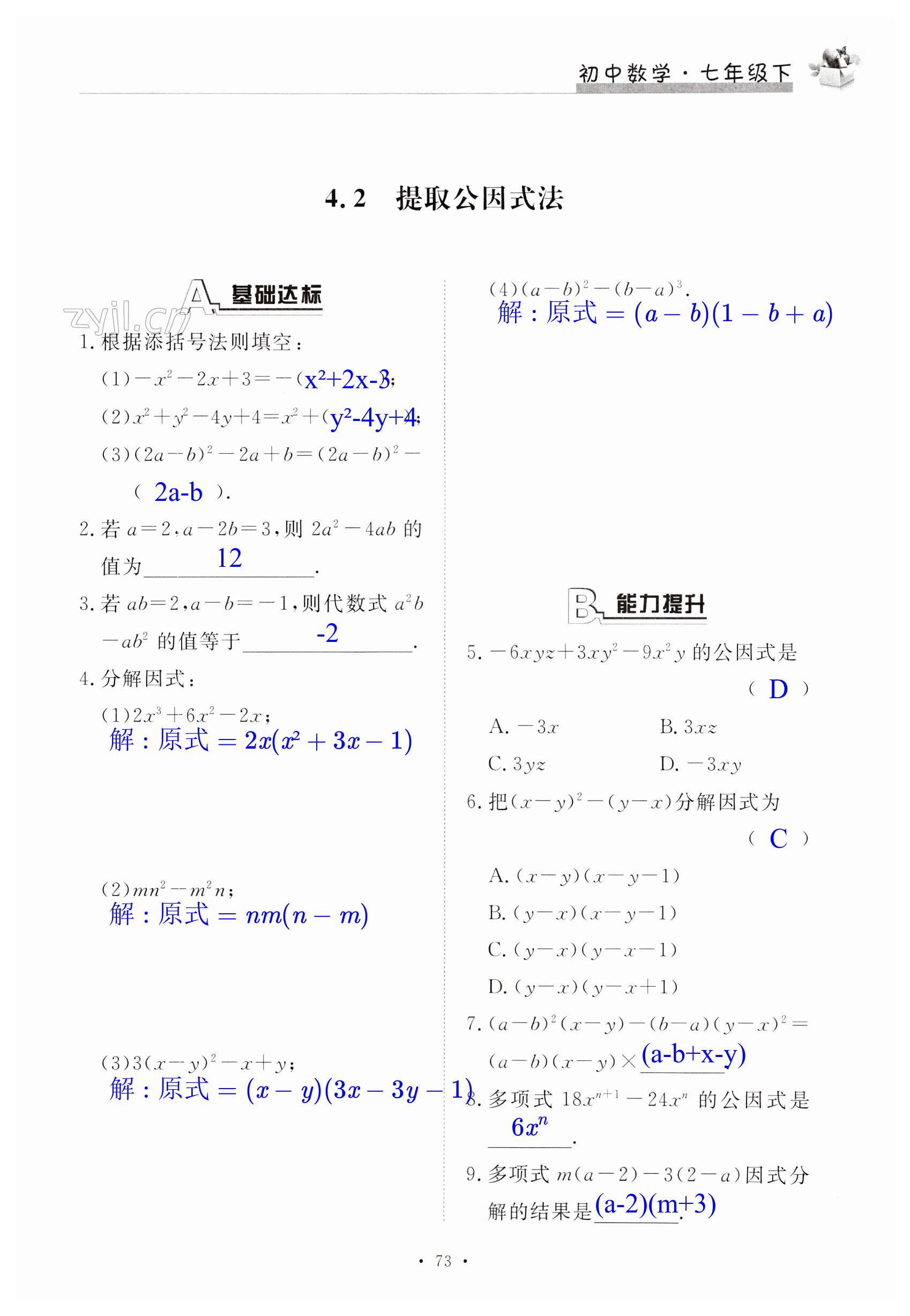 注:目前有些书本章节名称可能整理的还不是很完善,但都是按照顺序排列的,请同学们按照顺序仔细查找。练习册 2023年新编课时精练七年级数学下册浙教版 答案主要是用来给同学们做完题方便对答案用的,请勿直接抄袭。