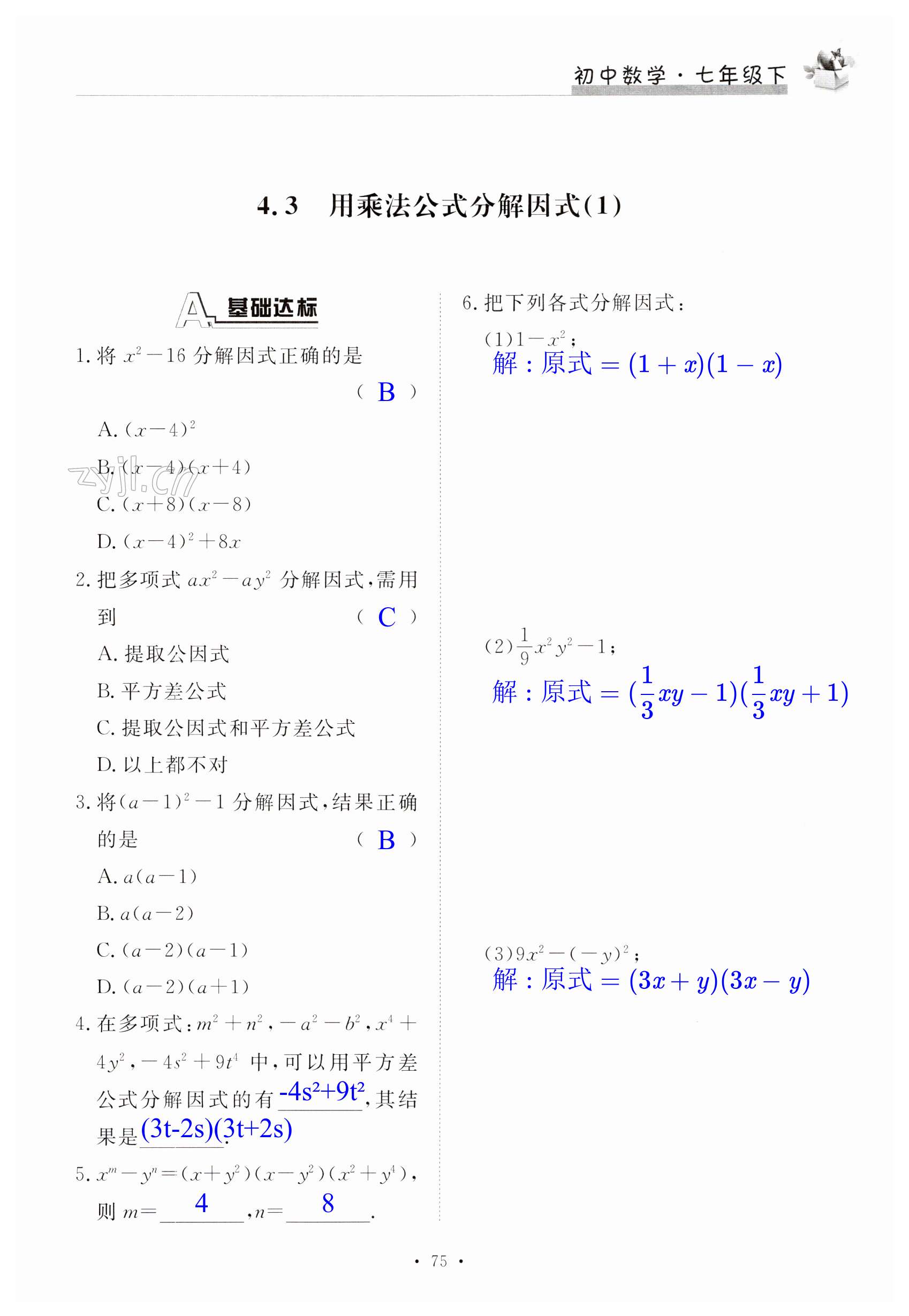 注:目前有些书本章节名称可能整理的还不是很完善,但都是按照顺序排列的,请同学们按照顺序仔细查找。练习册 2023年新编课时精练七年级数学下册浙教版 答案主要是用来给同学们做完题方便对答案用的,请勿直接抄袭。