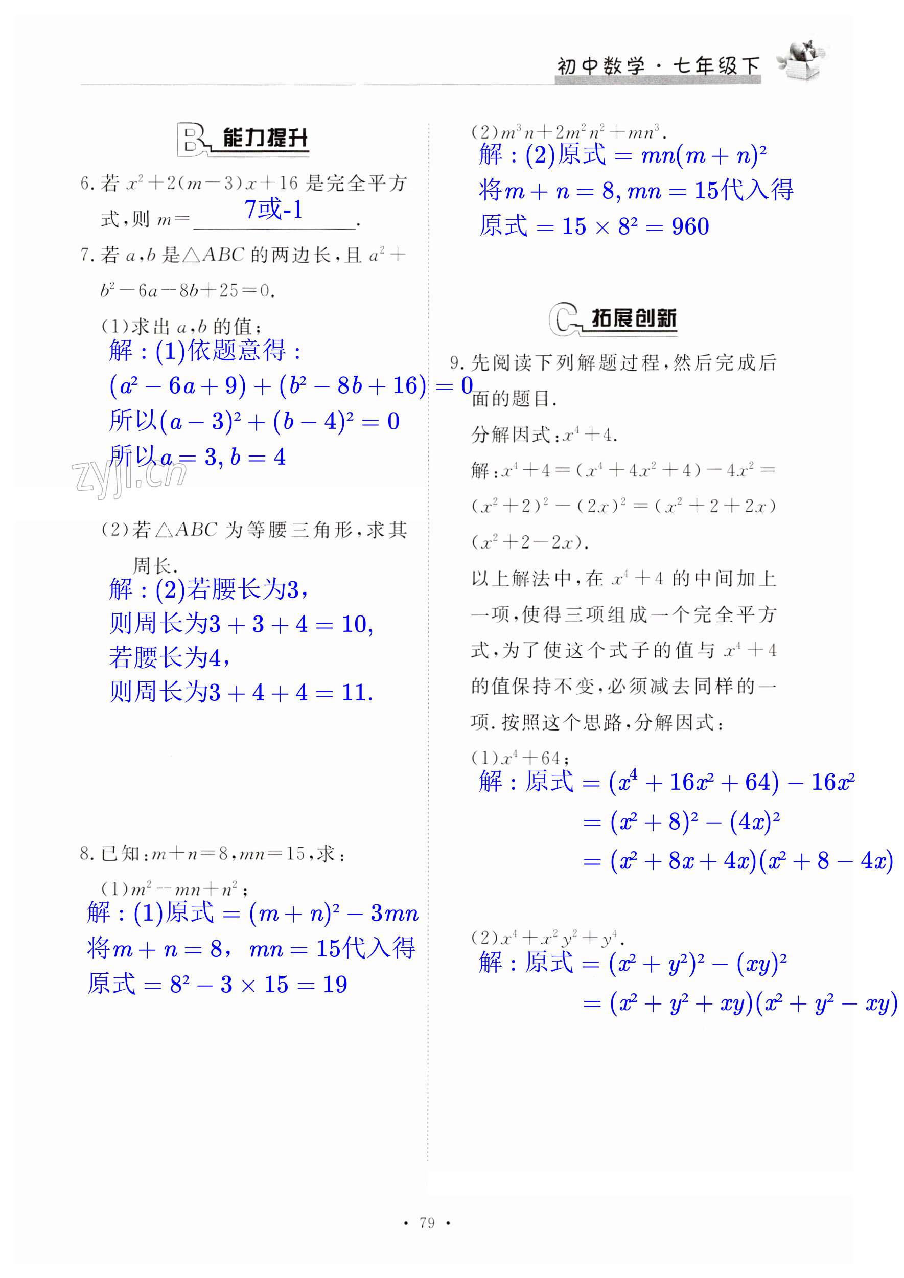 注:目前有些书本章节名称可能整理的还不是很完善,但都是按照顺序排列的,请同学们按照顺序仔细查找。练习册 2023年新编课时精练七年级数学下册浙教版 答案主要是用来给同学们做完题方便对答案用的,请勿直接抄袭。