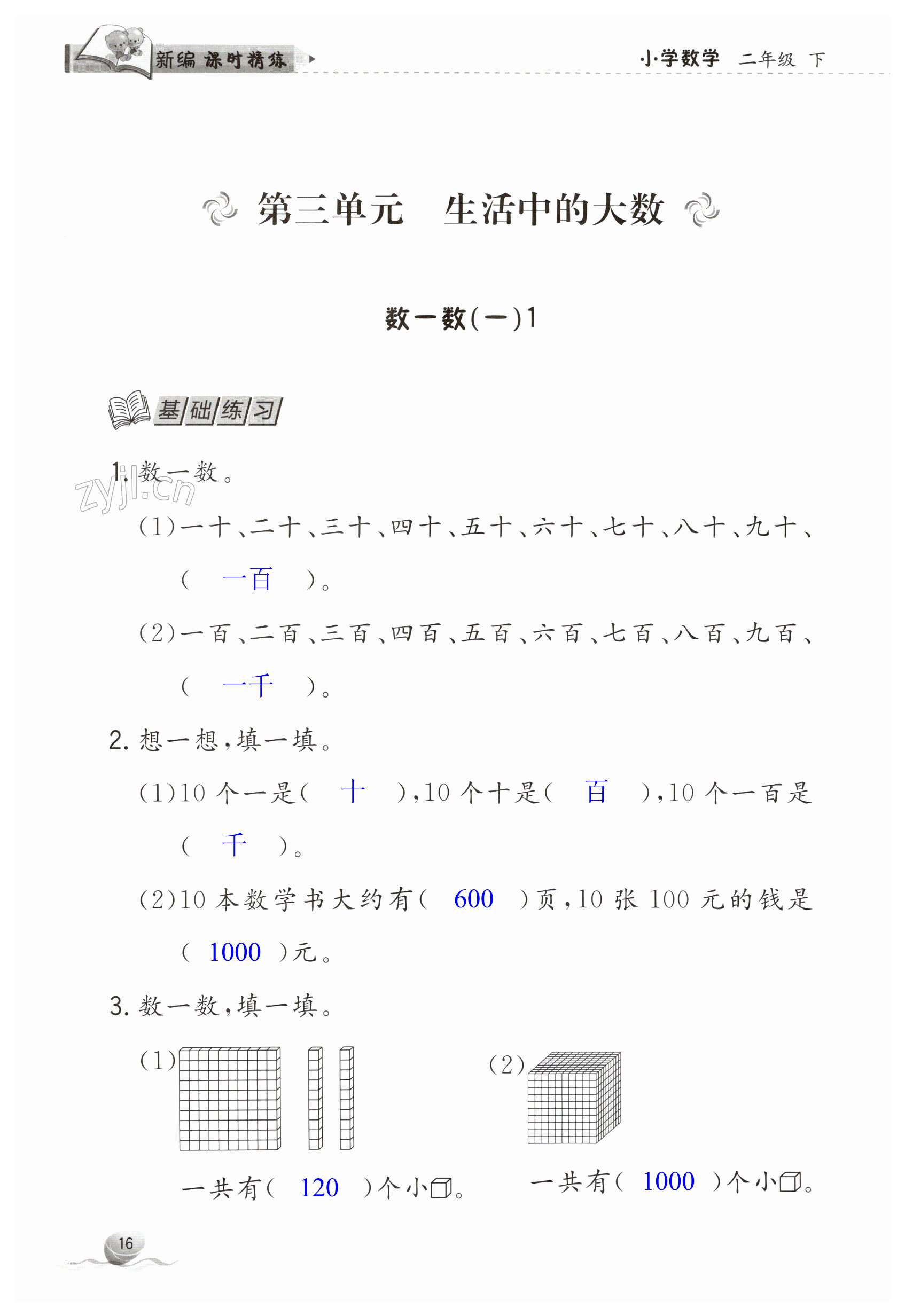 注:目前有些书本章节名称可能整理的还不是很完善,但都是按照顺序排列的,请同学们按照顺序仔细查找。练习册 2023年新编课时精练二年级数学下册北师大版 答案主要是用来给同学们做完题方便对答案用的,请勿直接抄袭。