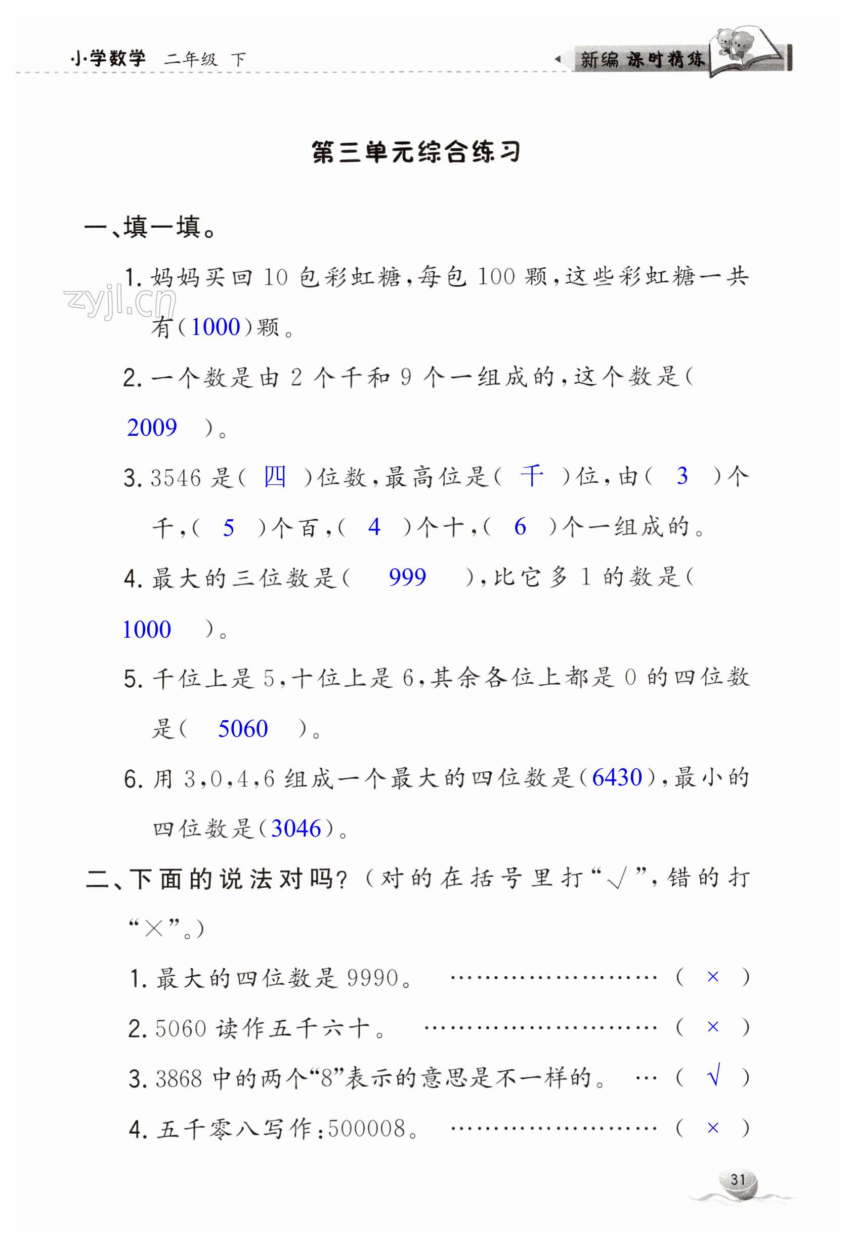 注:目前有些书本章节名称可能整理的还不是很完善,但都是按照顺序排列的,请同学们按照顺序仔细查找。练习册 2023年新编课时精练二年级数学下册北师大版 答案主要是用来给同学们做完题方便对答案用的,请勿直接抄袭。