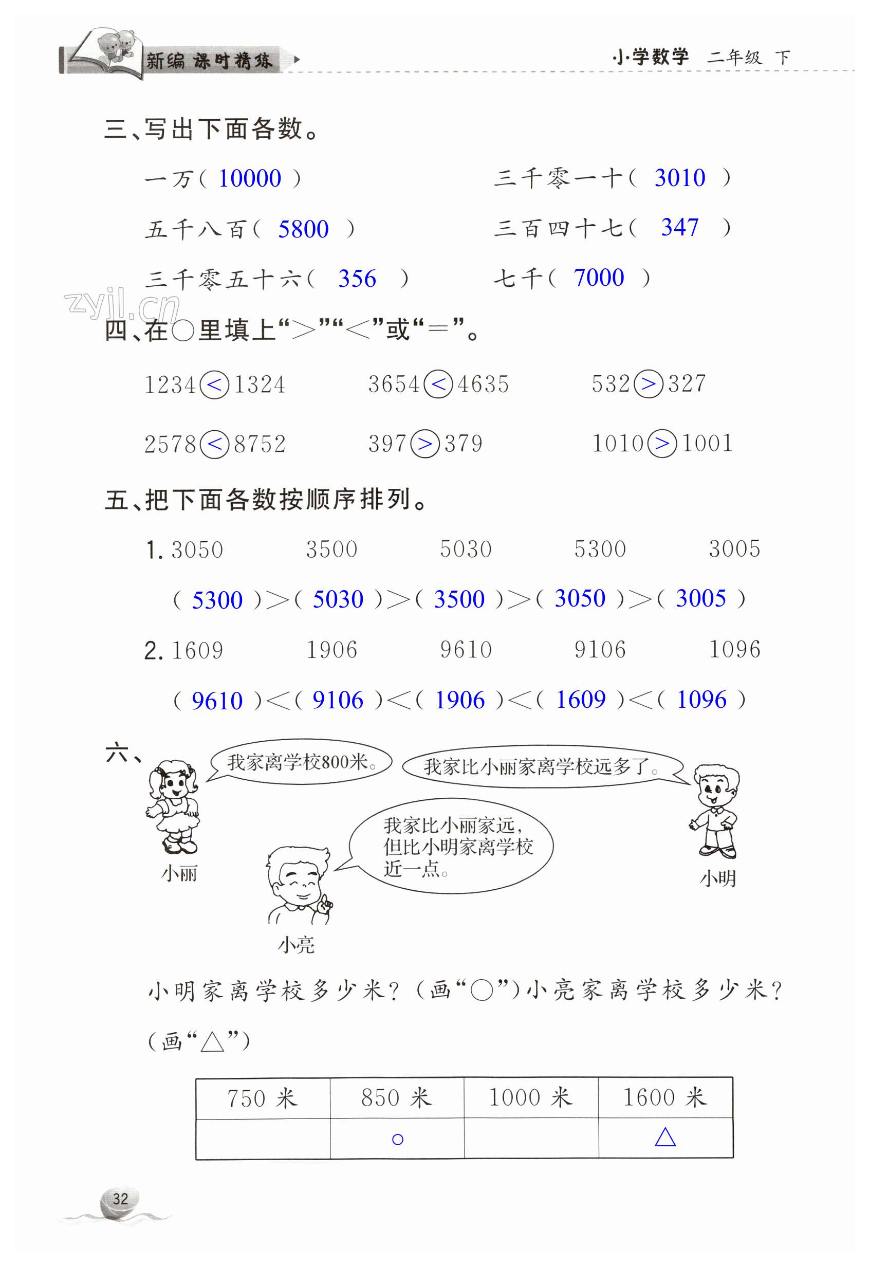 注:目前有些书本章节名称可能整理的还不是很完善,但都是按照顺序排列的,请同学们按照顺序仔细查找。练习册 2023年新编课时精练二年级数学下册北师大版 答案主要是用来给同学们做完题方便对答案用的,请勿直接抄袭。