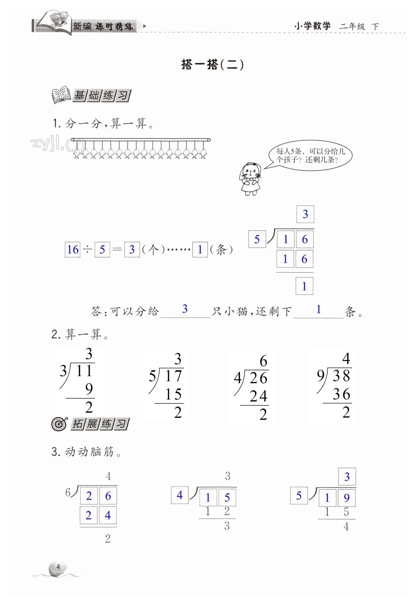 注:目前有些书本章节名称可能整理的还不是很完善,但都是按照顺序排列的,请同学们按照顺序仔细查找。练习册 2023年新编课时精练二年级数学下册北师大版 答案主要是用来给同学们做完题方便对答案用的,请勿直接抄袭。