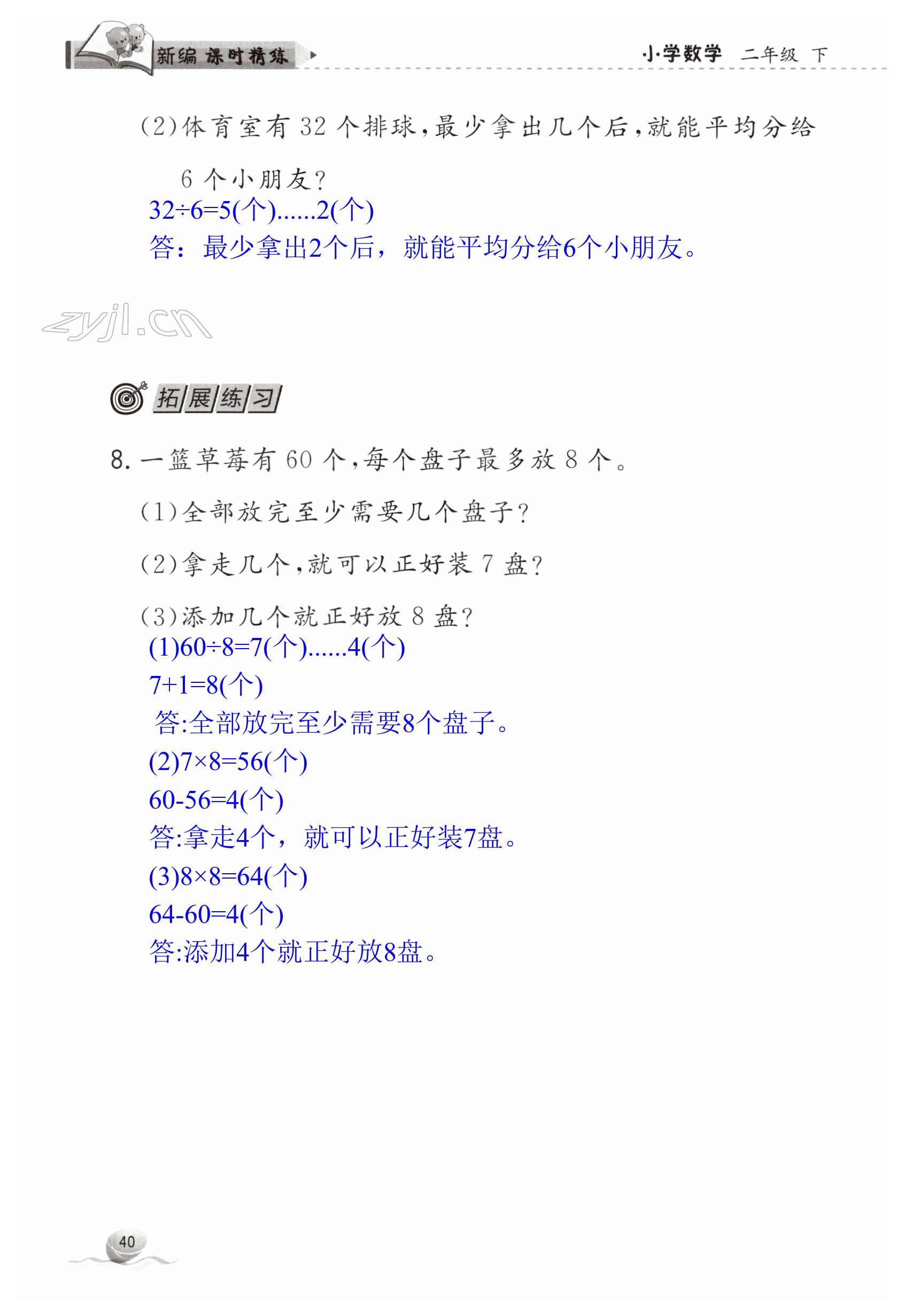 注:目前有些书本章节名称可能整理的还不是很完善,但都是按照顺序排列的,请同学们按照顺序仔细查找。练习册 2023年新编课时精练二年级数学下册北师大版 答案主要是用来给同学们做完题方便对答案用的,请勿直接抄袭。