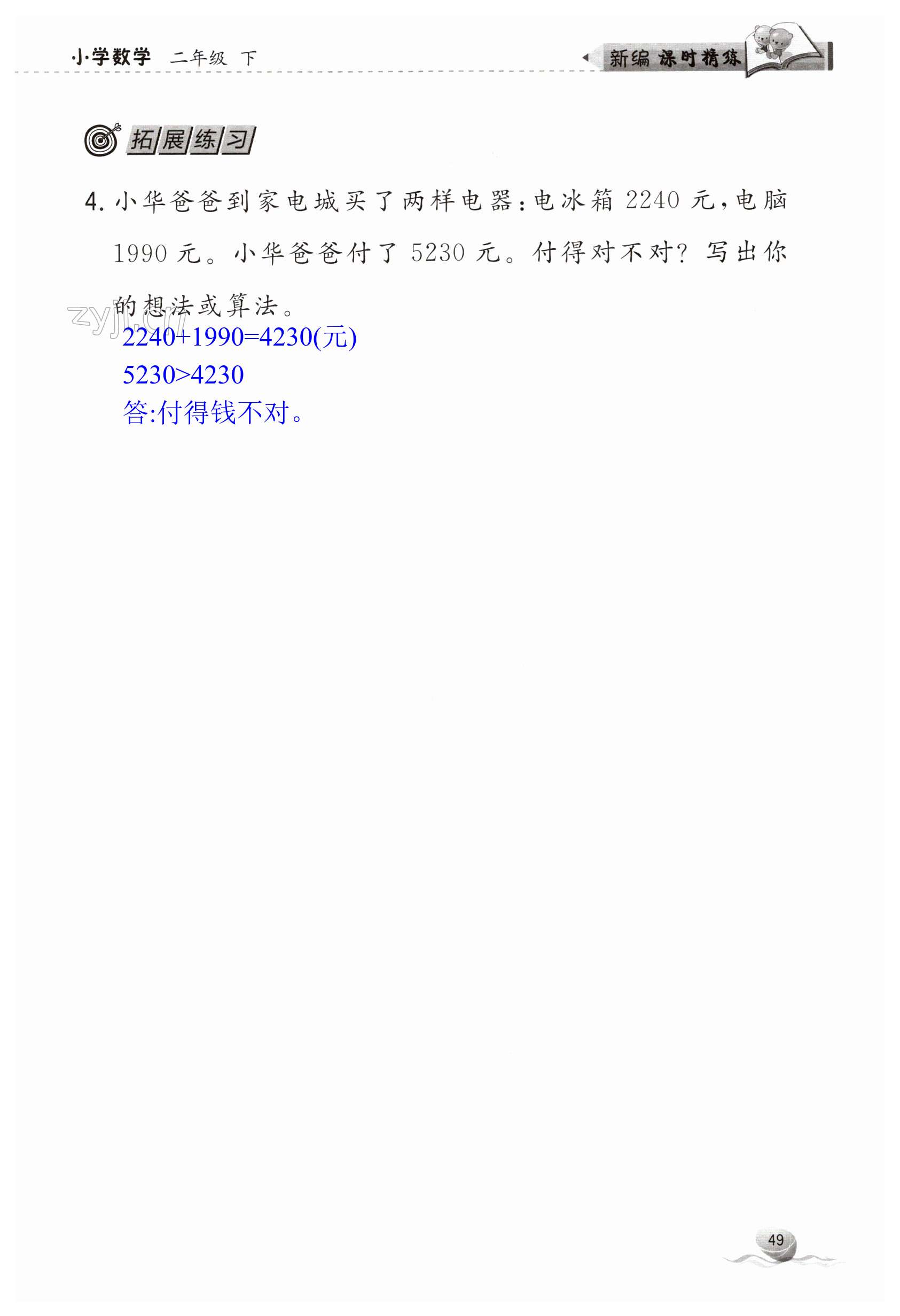 注:目前有些书本章节名称可能整理的还不是很完善,但都是按照顺序排列的,请同学们按照顺序仔细查找。练习册 2023年新编课时精练二年级数学下册北师大版 答案主要是用来给同学们做完题方便对答案用的,请勿直接抄袭。