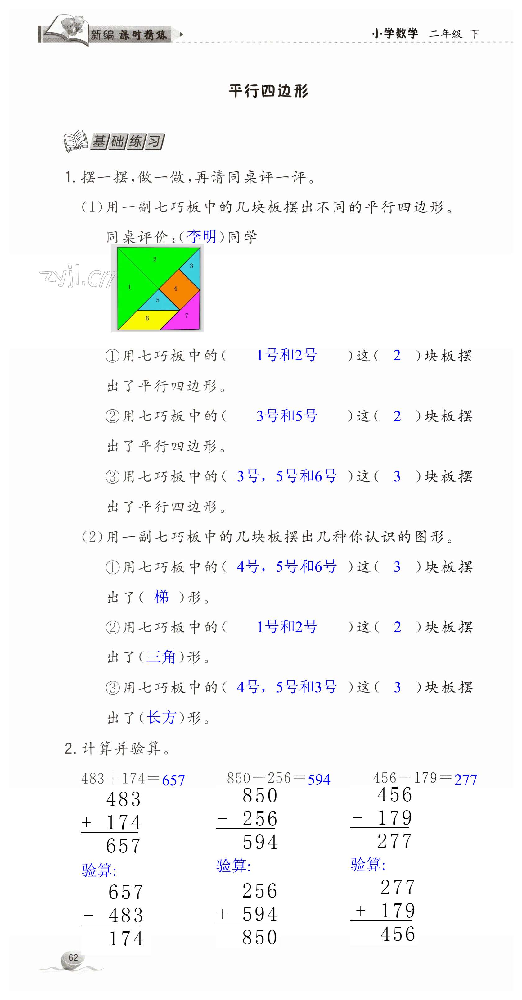 注:目前有些书本章节名称可能整理的还不是很完善,但都是按照顺序排列的,请同学们按照顺序仔细查找。练习册 2023年新编课时精练二年级数学下册北师大版 答案主要是用来给同学们做完题方便对答案用的,请勿直接抄袭。