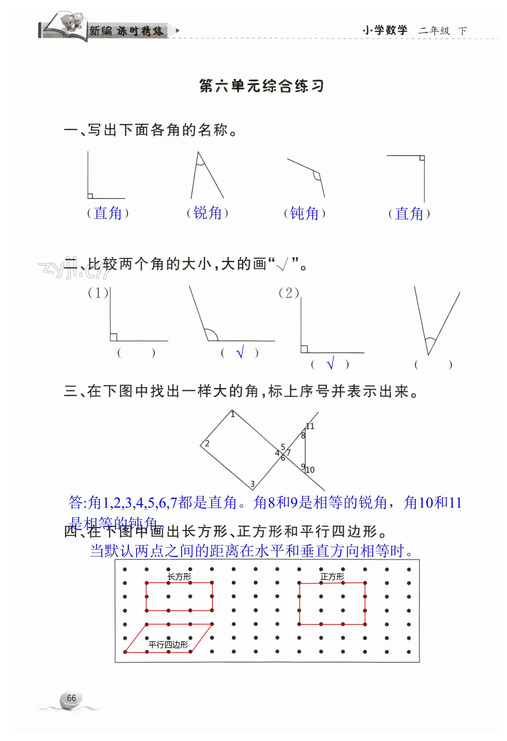 注:目前有些书本章节名称可能整理的还不是很完善,但都是按照顺序排列的,请同学们按照顺序仔细查找。练习册 2023年新编课时精练二年级数学下册北师大版 答案主要是用来给同学们做完题方便对答案用的,请勿直接抄袭。