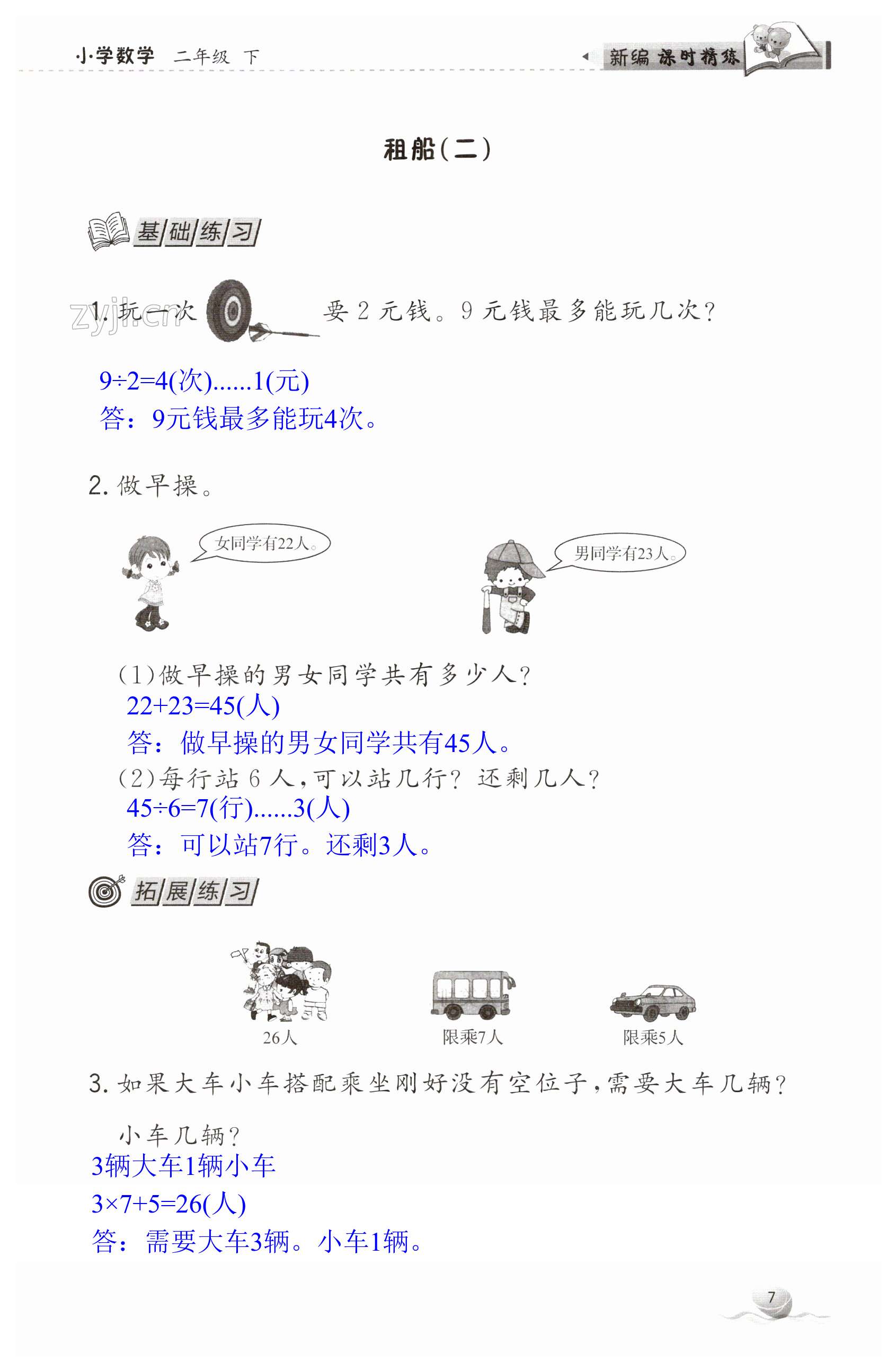 注:目前有些书本章节名称可能整理的还不是很完善,但都是按照顺序排列的,请同学们按照顺序仔细查找。练习册 2023年新编课时精练二年级数学下册北师大版 答案主要是用来给同学们做完题方便对答案用的,请勿直接抄袭。