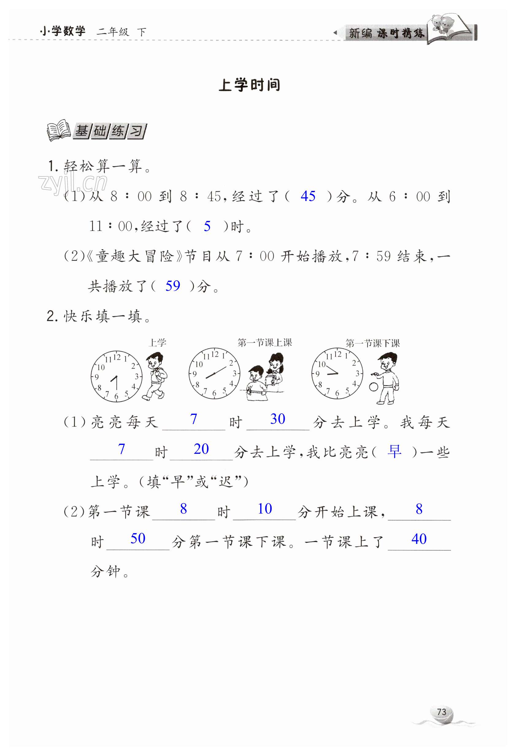 注:目前有些书本章节名称可能整理的还不是很完善,但都是按照顺序排列的,请同学们按照顺序仔细查找。练习册 2023年新编课时精练二年级数学下册北师大版 答案主要是用来给同学们做完题方便对答案用的,请勿直接抄袭。