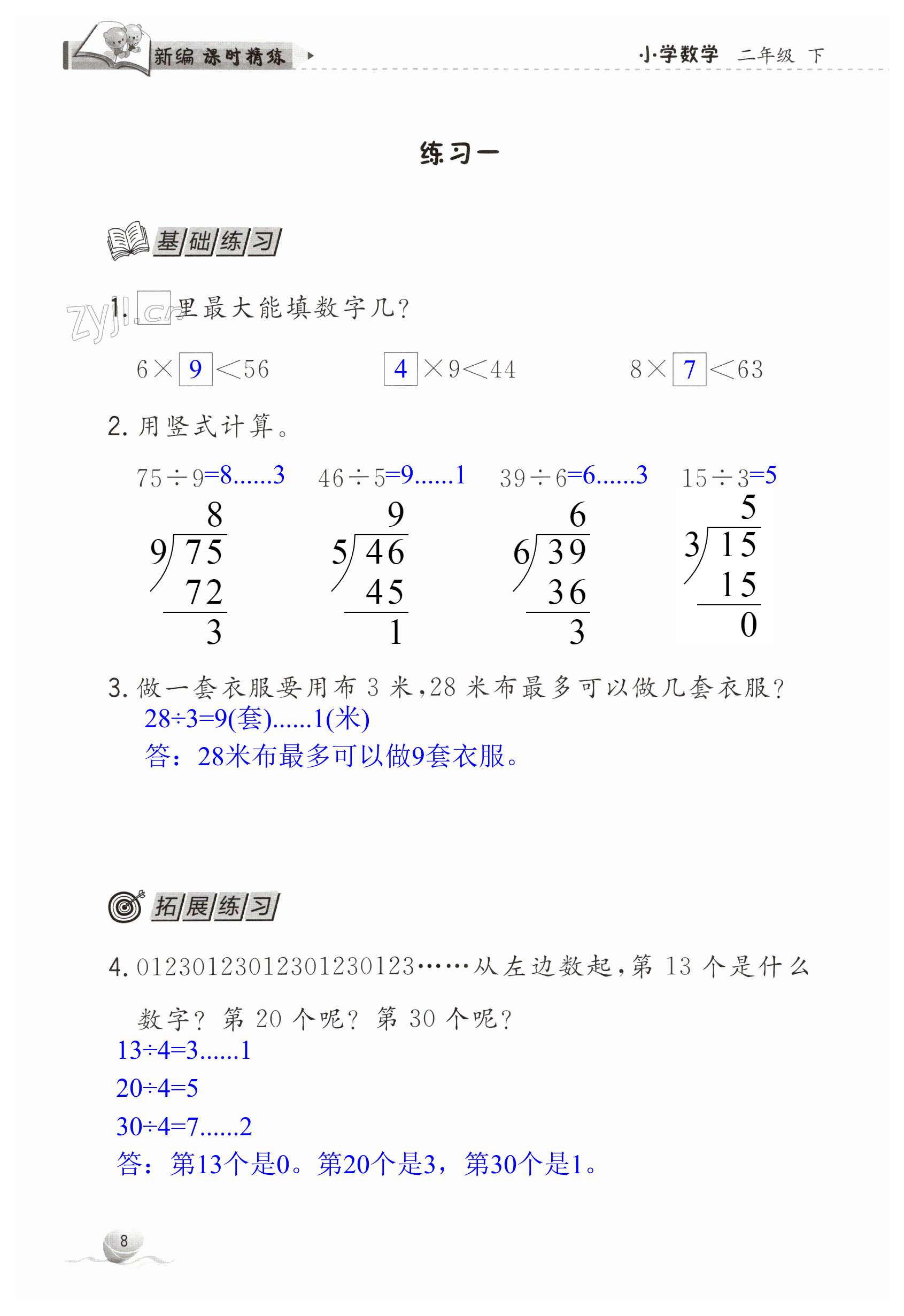 注:目前有些书本章节名称可能整理的还不是很完善,但都是按照顺序排列的,请同学们按照顺序仔细查找。练习册 2023年新编课时精练二年级数学下册北师大版 答案主要是用来给同学们做完题方便对答案用的,请勿直接抄袭。
