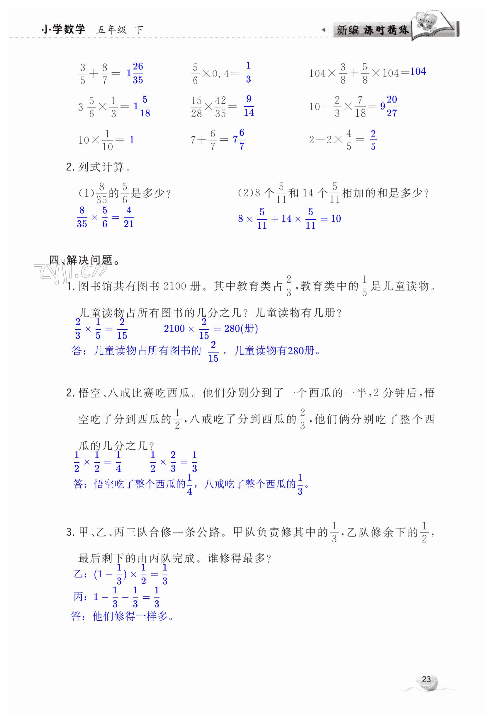 注:目前有些书本章节名称可能整理的还不是很完善,但都是按照顺序排列的,请同学们按照顺序仔细查找。练习册 2023年新编课时精练五年级数学下册北师大版 答案主要是用来给同学们做完题方便对答案用的,请勿直接抄袭。