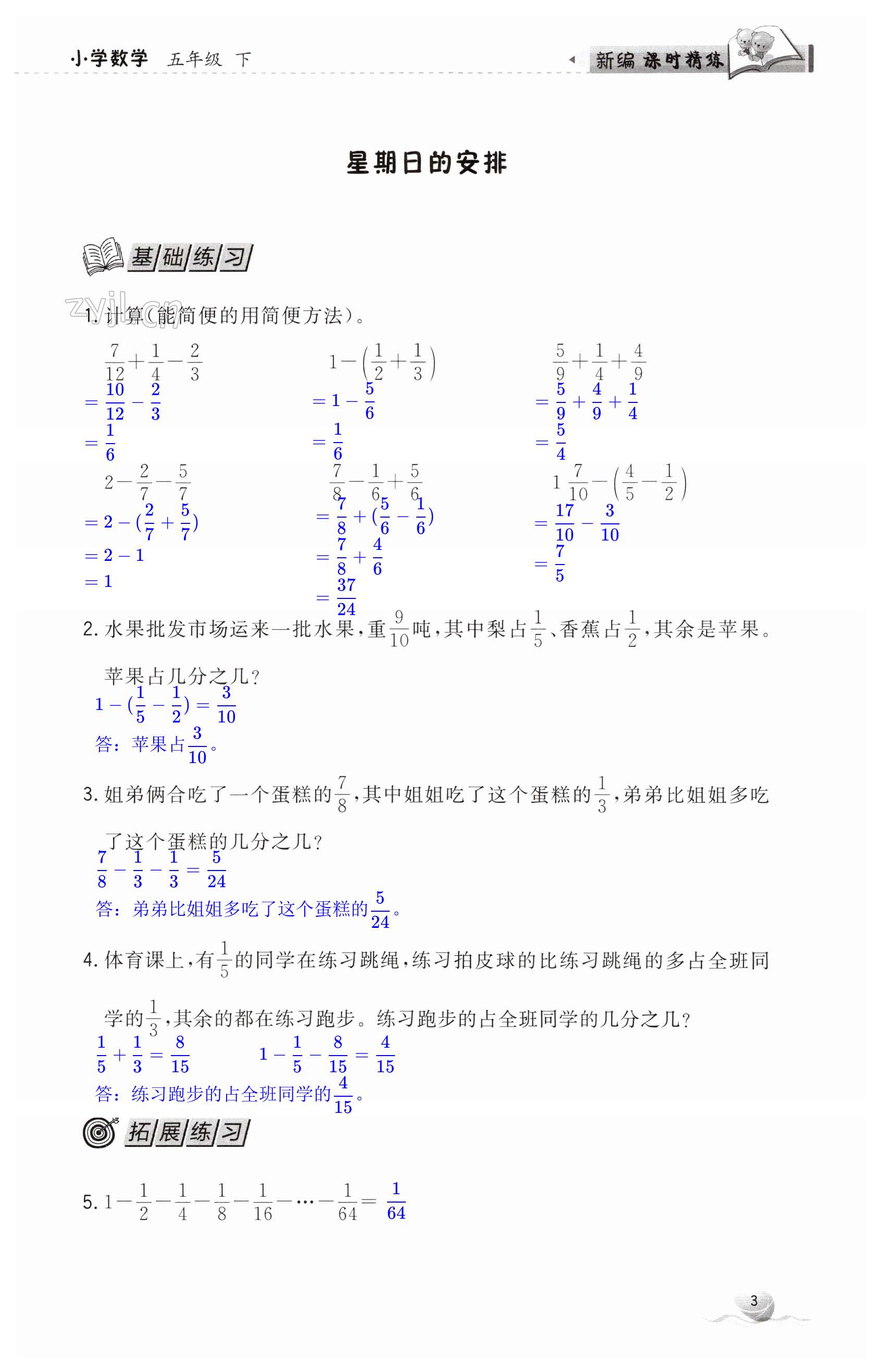 注:目前有些书本章节名称可能整理的还不是很完善,但都是按照顺序排列的,请同学们按照顺序仔细查找。练习册 2023年新编课时精练五年级数学下册北师大版 答案主要是用来给同学们做完题方便对答案用的,请勿直接抄袭。