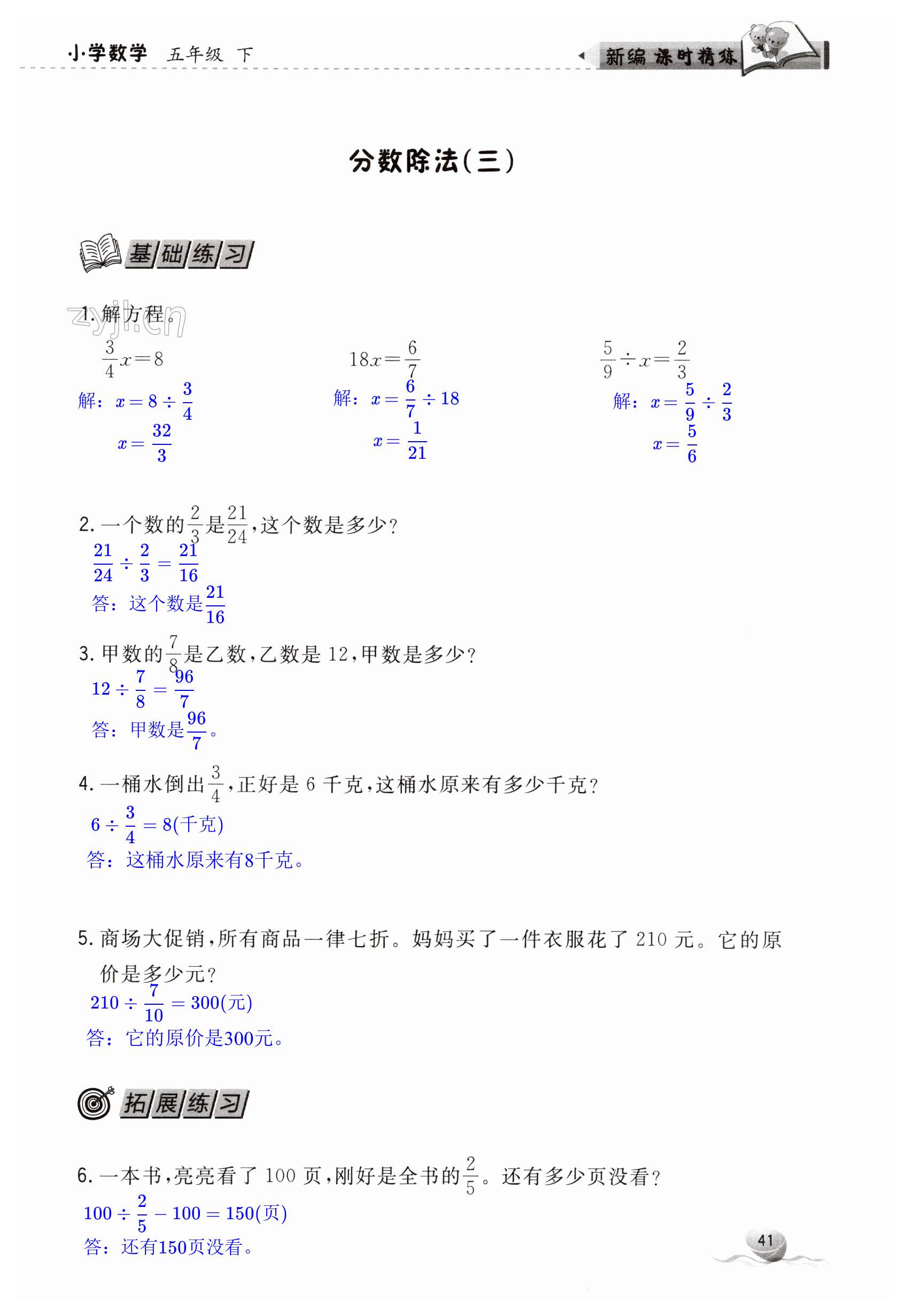 注:目前有些书本章节名称可能整理的还不是很完善,但都是按照顺序排列的,请同学们按照顺序仔细查找。练习册 2023年新编课时精练五年级数学下册北师大版 答案主要是用来给同学们做完题方便对答案用的,请勿直接抄袭。