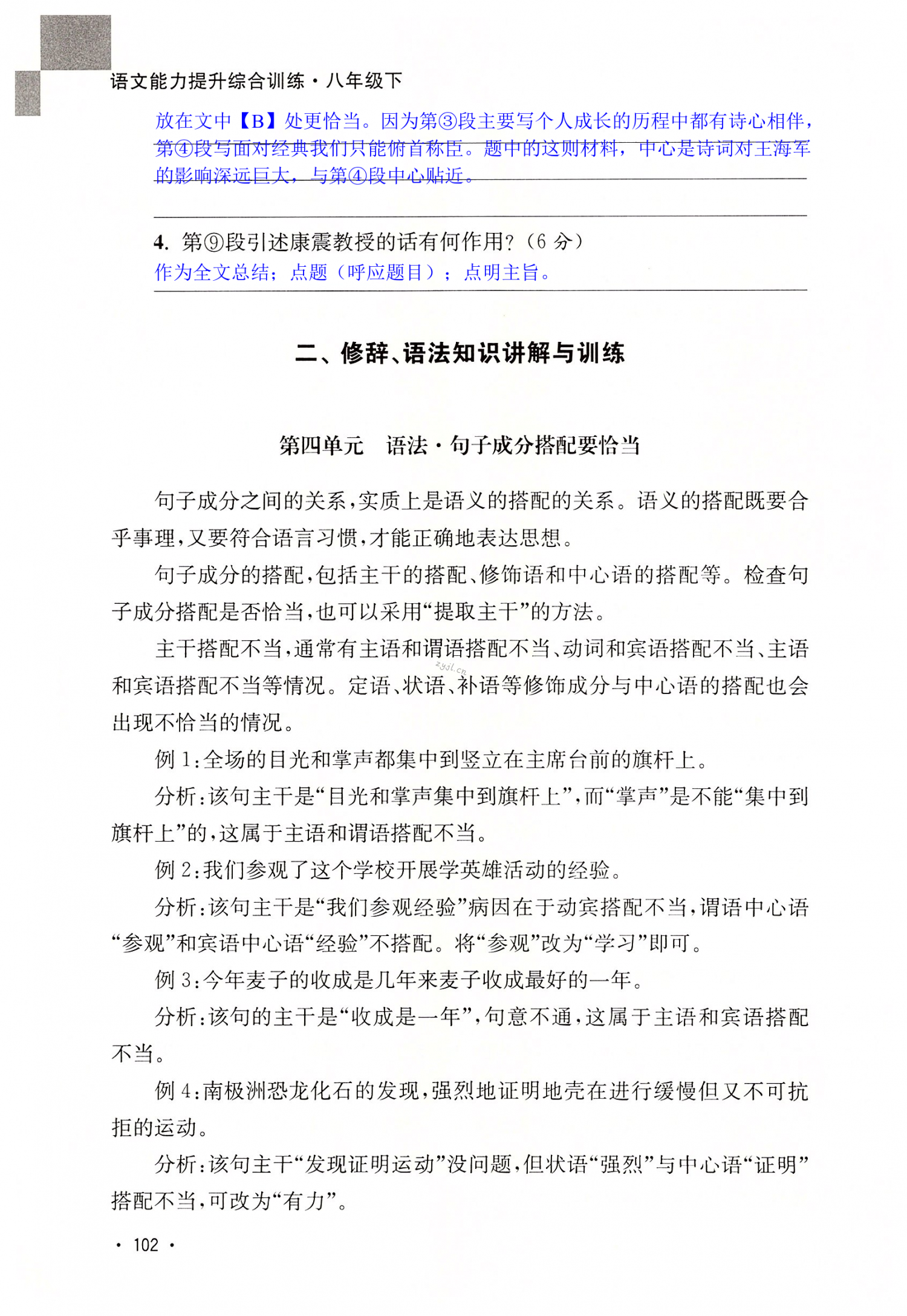 注:目前有些书本章节名称可能整理的还不是很完善,但都是按照顺序排列的,请同学们按照顺序仔细查找。练习册 2023年语文能力提升综合训练八年级语文下册 答案主要是用来给同学们做完题方便对答案用的,请勿直接抄袭。