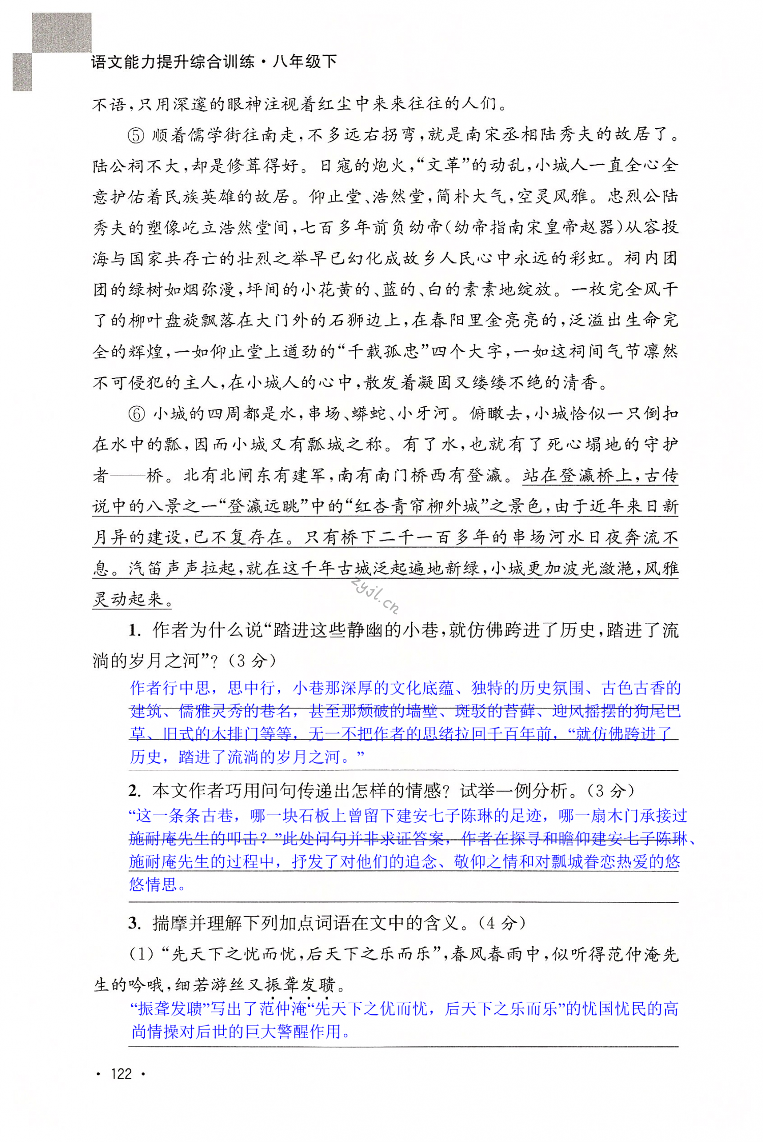 注:目前有些书本章节名称可能整理的还不是很完善,但都是按照顺序排列的,请同学们按照顺序仔细查找。练习册 2023年语文能力提升综合训练八年级语文下册 答案主要是用来给同学们做完题方便对答案用的,请勿直接抄袭。
