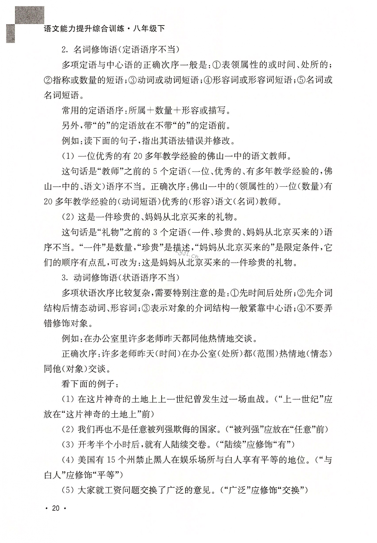 注:目前有些书本章节名称可能整理的还不是很完善,但都是按照顺序排列的,请同学们按照顺序仔细查找。练习册 2023年语文能力提升综合训练八年级语文下册 答案主要是用来给同学们做完题方便对答案用的,请勿直接抄袭。
