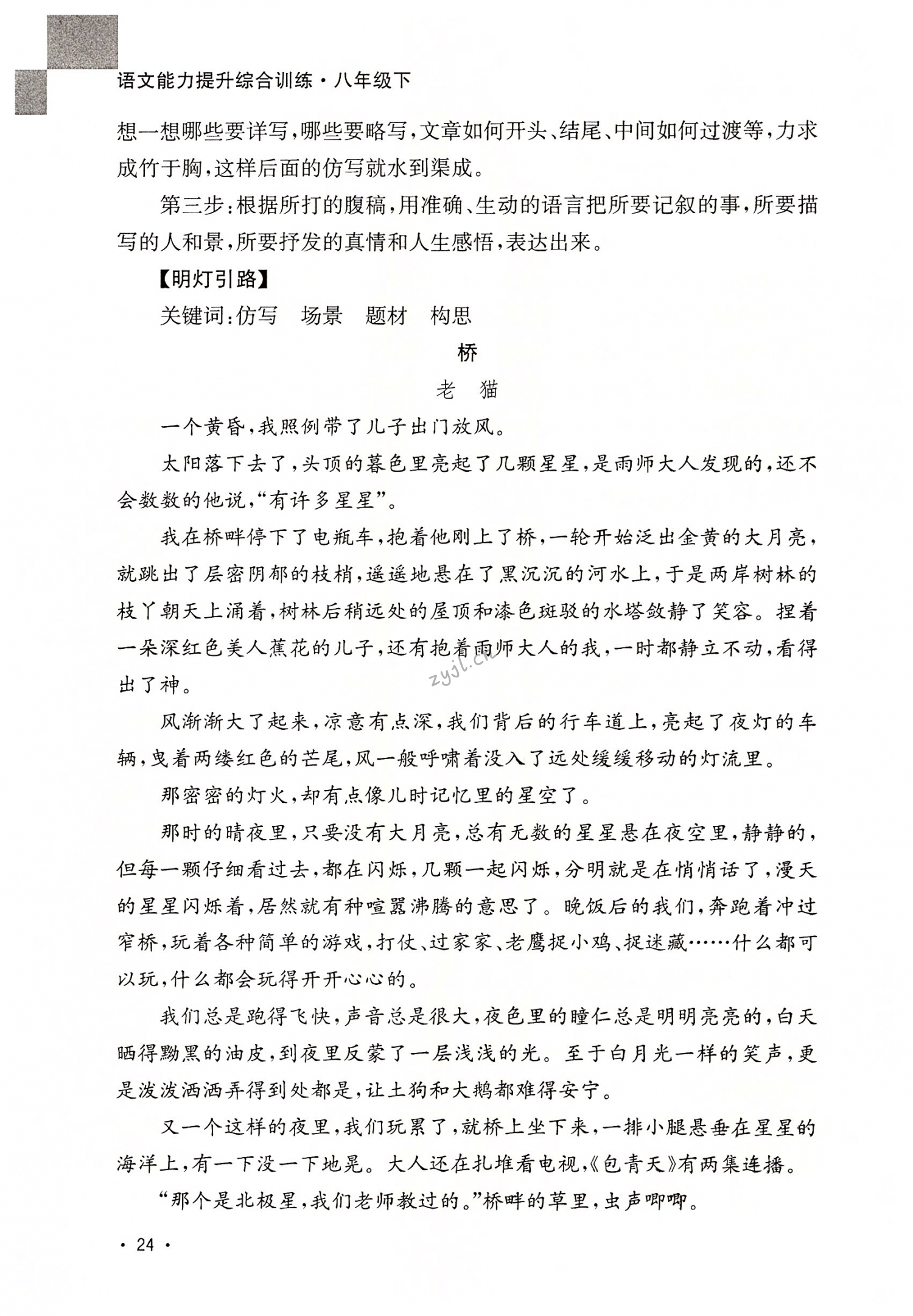 注:目前有些书本章节名称可能整理的还不是很完善,但都是按照顺序排列的,请同学们按照顺序仔细查找。练习册 2023年语文能力提升综合训练八年级语文下册 答案主要是用来给同学们做完题方便对答案用的,请勿直接抄袭。
