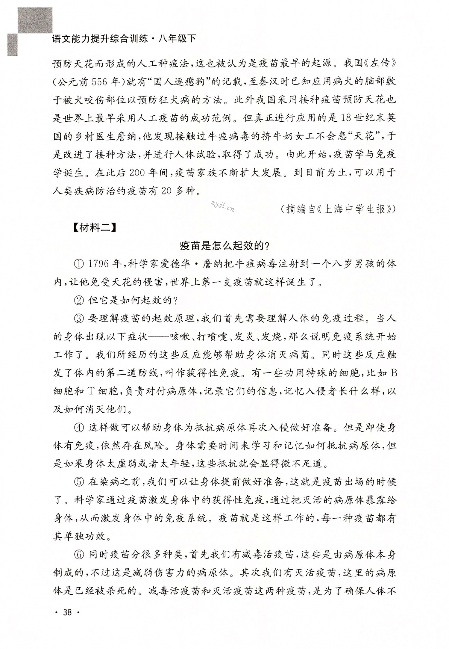 注:目前有些书本章节名称可能整理的还不是很完善,但都是按照顺序排列的,请同学们按照顺序仔细查找。练习册 2023年语文能力提升综合训练八年级语文下册 答案主要是用来给同学们做完题方便对答案用的,请勿直接抄袭。