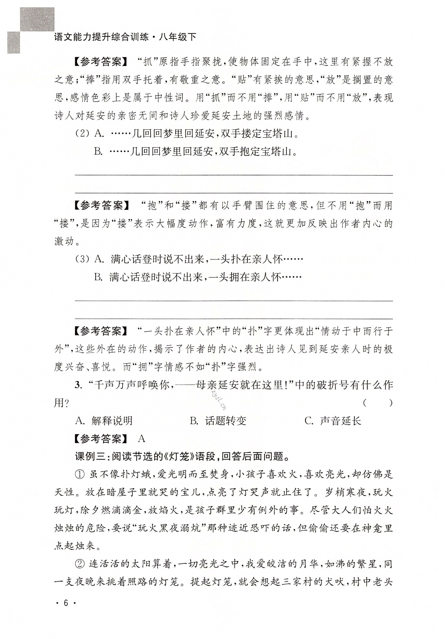注:目前有些书本章节名称可能整理的还不是很完善,但都是按照顺序排列的,请同学们按照顺序仔细查找。练习册 2023年语文能力提升综合训练八年级语文下册 答案主要是用来给同学们做完题方便对答案用的,请勿直接抄袭。